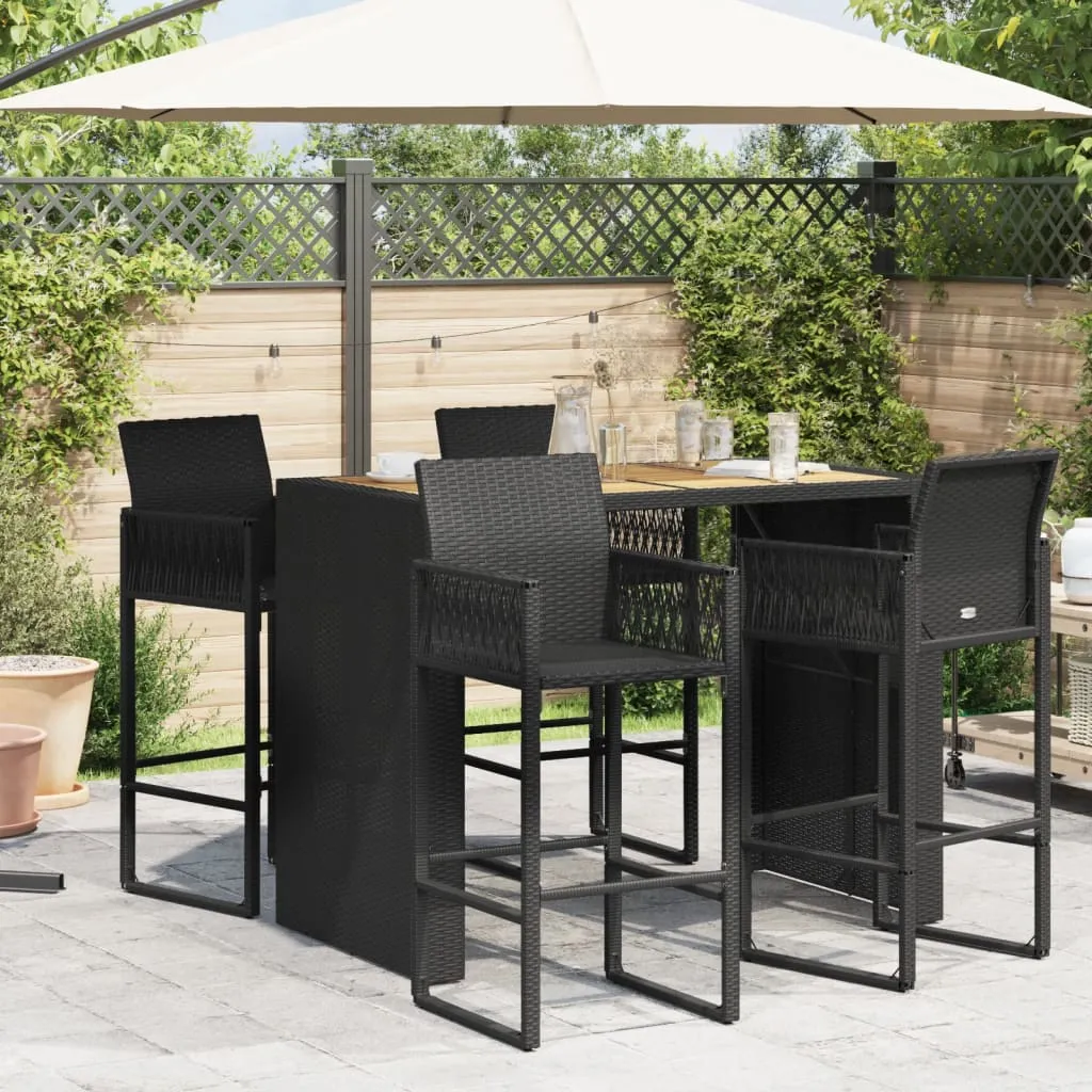 This garden bar table with a wooden top, designed with clean and simple lines, is an excellent choice for your garden, patio, and other outdoor space. Durable material: PE rattan, also known as poly rattan, is a strong, low-maintenance synthetic material that looks like natural rattan. It's lightweight, easy to clean, and commonly used for outdoor furniture due to its durability and weather-resistant properties.Stable and easy-to-clean tabletop: This garden table has an acacia wood top that is sturdy, durable, and easy to clean with a damp cloth.Robust and stable frame: The powder-coated steel frame ensures that the garden furniture is strong and stable for daily outdoor use. Good to know:To make sure your outdoor furniture stays beautiful, we recommend protecting it with a waterproof cover.
