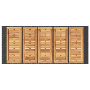 This garden bar table with a wooden top, designed with clean and simple lines, is an excellent choice for your garden, patio, and other outdoor space. Durable material: PE rattan, also known as poly rattan, is a strong, low-maintenance synthetic material that looks like natural rattan. It's lightweight, easy to clean, and commonly used for outdoor furniture due to its durability and weather-resistant properties.Stable and easy-to-clean tabletop: This garden table has an acacia wood top that is sturdy, durable, and easy to clean with a damp cloth.Robust and stable frame: The powder-coated steel frame ensures that the garden furniture is strong and stable for daily outdoor use. Good to know:To make sure your outdoor furniture stays beautiful, we recommend protecting it with a waterproof cover.