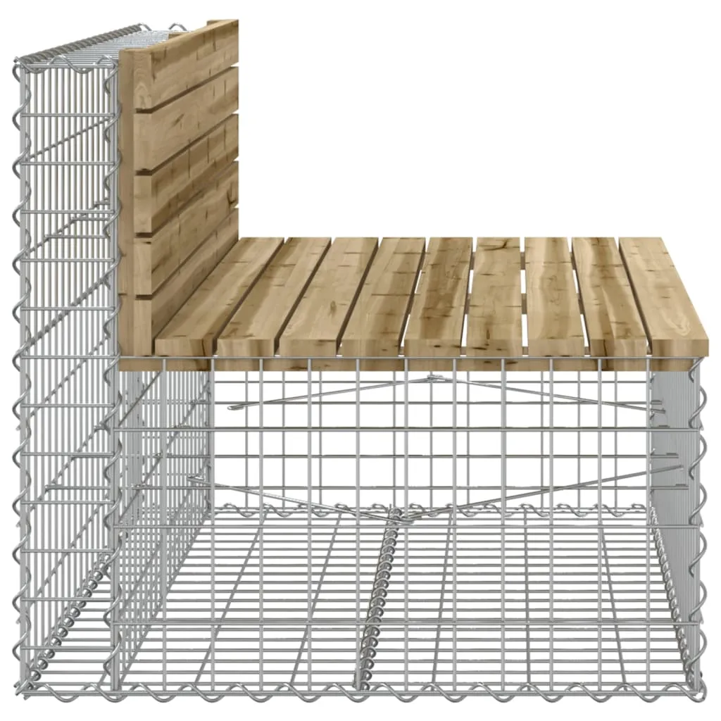 Create your own outdoor seating space with this garden bench! This garden bench will be a real eye-catcher in your outdoor living space. Impregnated wood: This top of the garden seat is made of vacuum pressure impregnated pinewood for durability. Solid pine wood is a beautiful natural material. It has a straight grain, and the knots give the material its signature, rustic look. Impregnation is a preservation process that is carried out by using autoclaves. The pressure-treatment increases resistance to decay and weather.Sturdy and stable base: This outdoor bench features a galvanised steel gabion basket base that is designed to be filled with rocks and gravels for additional beauty. The mesh grid of gabion basket is welded with transverse and longitudinal wires at every intersection for extra stability.Compact design: This garden bench seat is perfect for a limited space thanks to its narrow and compact design.Wide range of uses: This park bench is suitable for gardens, backyards, patio spaces, secret corner locations and more. Good to know:To make sure your outdoor furniture stays beautiful, we recommend protecting it with a waterproof cover.