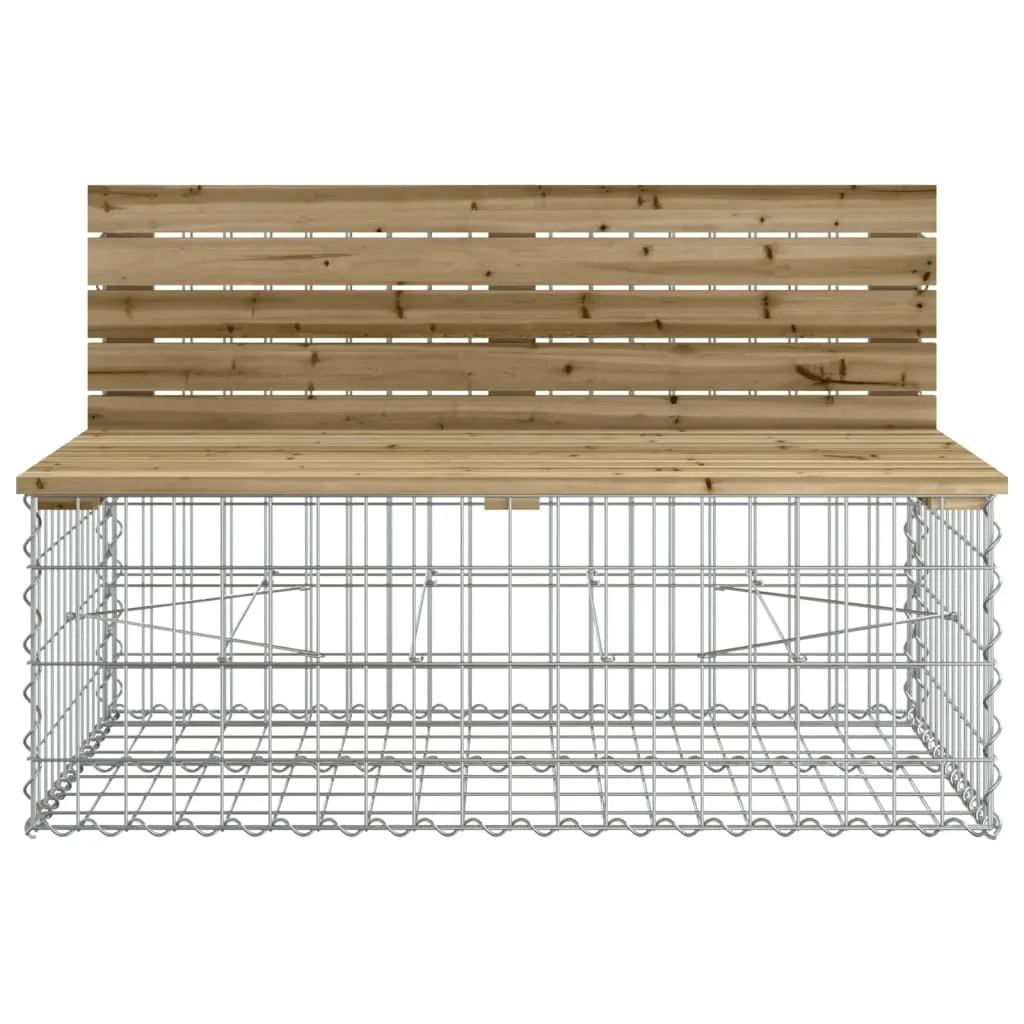 Create your own outdoor seating space with this garden bench! This garden bench will be a real eye-catcher in your outdoor living space. Impregnated wood: The top of the garden seat is made of vacuum pressure impregnated pinewood for durability. Solid pine wood is a beautiful natural material. It has a straight grain, and the knots give the material its signature, rustic look. Impregnation is a preservation process that is carried out by using autoclaves. The pressure-treatment increases resistance to decay and weather.Sturdy and stable base: The outdoor bench features a galvanised steel gabion basket base that is designed to be filled with rocks and gravels for additional beauty. The mesh grid of gabion basket is welded with transverse and longitudinal wires at every intersection for extra stability.Compact design: The garden bench seat is perfect for a limited space thanks to its narrow and compact design.Wide range of uses: The park bench is suitable for gardens, backyards, patio spaces, secret corner locations and more. Good to know:This product is assembled by 2 garden benches (corner) and a garden bench (middle).
