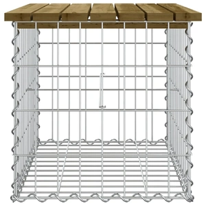 Create your own outdoor seating space with this garden bench! This garden bench will be a real eye-catcher in your outdoor living space. Impregnated wood: This top of the garden seat is made of vacuum pressure impregnated pinewood for durability. Solid pine wood is a beautiful natural material. It has a straight grain, and the knots give the material its signature, rustic look. Impregnation is a preservation process that is carried out by using autoclaves. The pressure-treatment increases resistance to decay and weather.Sturdy and stable base: This outdoor bench features a galvanised steel gabion basket base that is designed to be filled with rocks and gravels for additional beauty. The mesh grid of gabion basket is welded with transverse and longitudinal wires at every intersection for extra stability.Compact design: This garden bench seat is perfect for a limited space thanks to its narrow and compact design.Wide range of uses: This park bench is suitable for gardens, backyards, patio spaces, secret corner locations and more. Good to know:To make sure your outdoor furniture stays beautiful, we recommend protecting it with a waterproof cover.