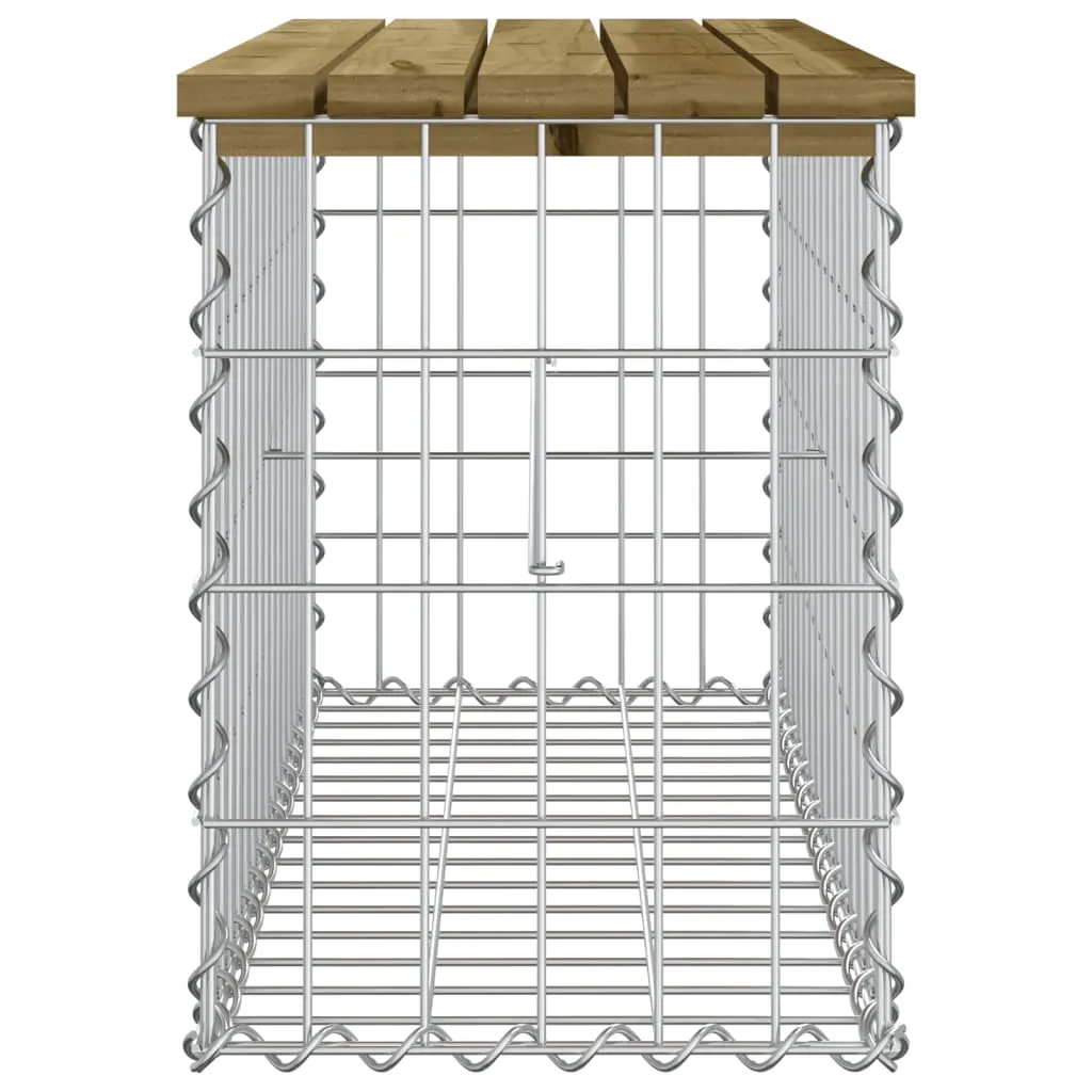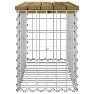 Create your own outdoor seating space with this garden bench! This garden bench will be a real eye-catcher in your outdoor living space. Impregnated wood: This top of the garden seat is made of vacuum pressure impregnated pinewood for durability. Solid pine wood is a beautiful natural material. It has a straight grain, and the knots give the material its signature, rustic look. Impregnation is a preservation process that is carried out by using autoclaves. The pressure-treatment increases resistance to decay and weather.Sturdy and stable base: This outdoor bench features a galvanised steel gabion basket base that is designed to be filled with rocks and gravels for additional beauty. The mesh grid of gabion basket is welded with transverse and longitudinal wires at every intersection for extra stability.Compact design: This garden bench seat is perfect for a limited space thanks to its narrow and compact design.Wide range of uses: This park bench is suitable for gardens, backyards, patio spaces, secret corner locations and more. Good to know:To make sure your outdoor furniture stays beautiful, we recommend protecting it with a waterproof cover.