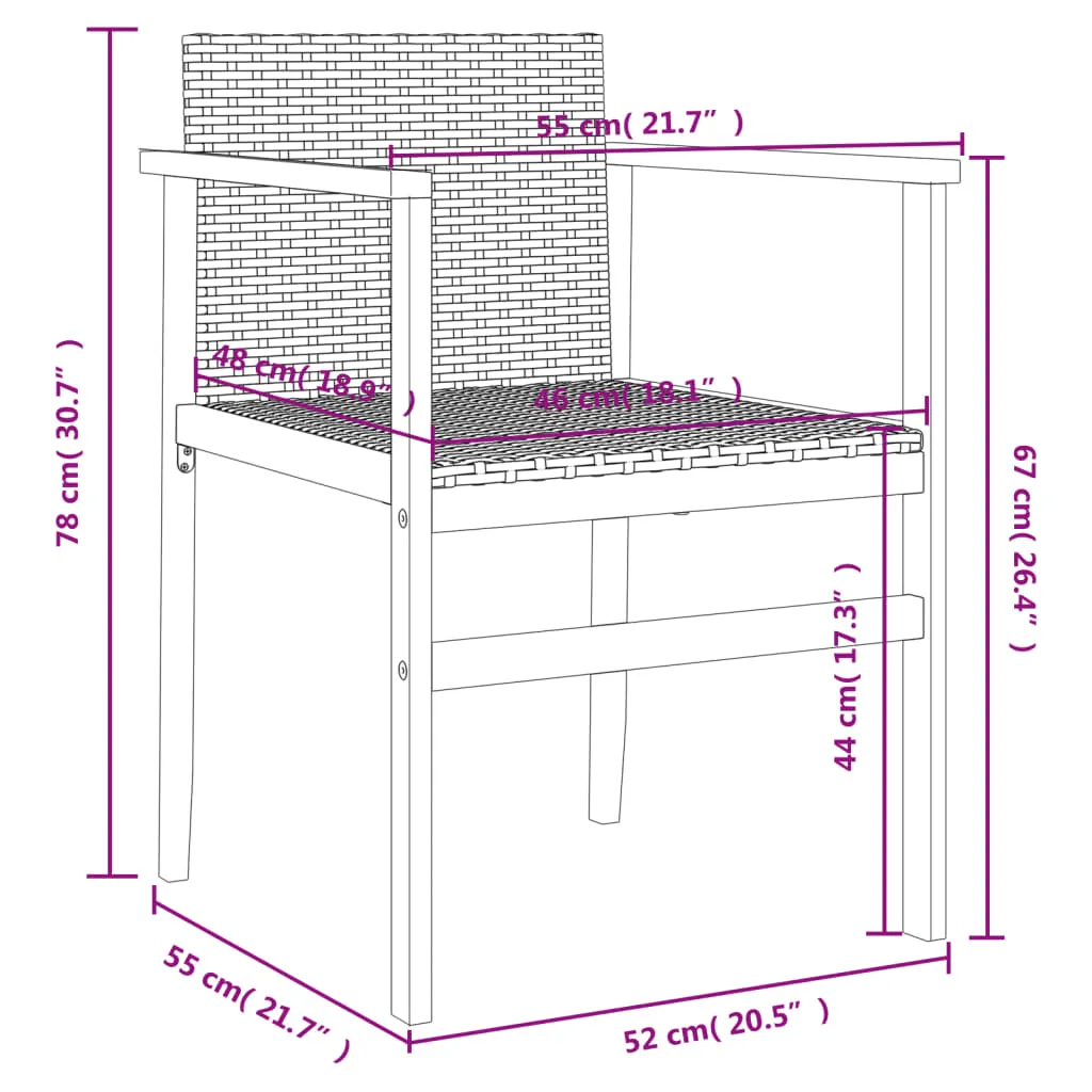 Relax and enjoy the outdoors in these comfortable garden chairs! Durable material: PE rattan, also known as poly rattan, is a strong, low-maintenance synthetic material that looks like natural rattan. It's lightweight, easy to clean, and commonly used for outdoor furniture due to its durability and weather-resistant properties.Comfortable seat experience: Featuring a supportive backrest and armrests, the garden seat gives you the utmost comfort.Robust and stable frame: The wooden and powder-coated steel frame ensures the garden furniture is strong and stable for daily outdoor use. Good to know:To make sure your outdoor furniture stays beautiful, we recommend protecting it with a waterproof cover.