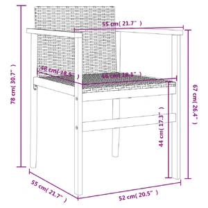 - Material: PE rattan, solid acacia wood with a natural oil finish, powder-coated steel