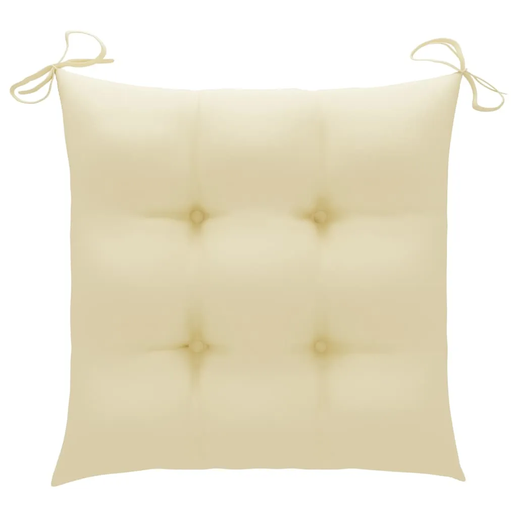 With a rustic and practical design, this wooden garden chair set will take your outdoor living space to the next level! Constructed from extremely durable teak hard wood, this piece of teak furniture has been seasoned, kiln dried and then fine sanded to give a very smooth appearance. Teak wood is known for its exceptional strength and weather resistance, making it far more suitable for garden furniture than any other kind of wood. Teak wood is the perfect choice if you want to purchase a long lasting piece of garden furniture. The outdoor chairs feature a refined look that can instantly blend into any garden or patio decor. The set is also the ideal choice for relaxing moments in a romantic country house garden or near an idyllic garden pond. The included cushion is practical and has a decorative function.