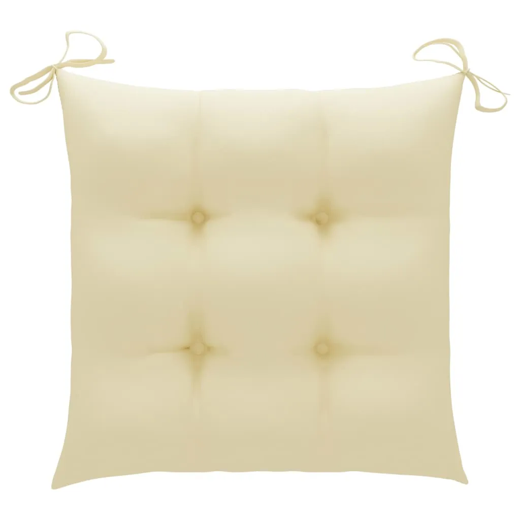 With a rustic and practical design, this wooden garden chair set will take your outdoor living space to the next level! Constructed from extremely durable teak hard wood, this piece of teak furniture has been seasoned, kiln dried and then fine sanded to give a very smooth appearance. Teak wood is known for its exceptional strength and weather resistance, making it far more suitable for garden furniture than any other kind of wood. Teak wood is the perfect choice if you want to purchase a long lasting piece of garden furniture. The outdoor chairs feature a refined look that can instantly blend into any garden or patio decor. The set is also the ideal choice for relaxing moments in a romantic country house garden or near an idyllic garden pond. The included cushion is practical and has a decorative function. Note: In order to extend the life of your outdoor furniture, we recommend you to protect it with a waterproof cover.