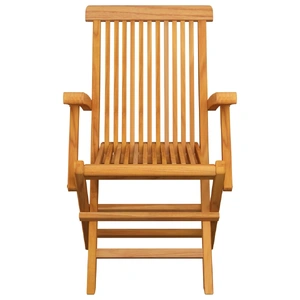 This wooden garden chair set consists of 6 pieces and is meant to be a great addition to your garden, terrace or patio. You can relax and chat with family and friends or enjoy the weather. Constructed from extremely durable teak hard wood, this piece of teak furniture has been seasoned, kiln dried and then fine sanded to give a very smooth appearance. Teak wood is known for its exceptional strength and weather resistance, making it far more suitable for garden furniture than any other kind of wood. Teak wood is the perfect choice if you want to purchase a long lasting piece of garden furniture. The sanded surface is easy to clean with a damp cloth. These outdoor chairs are also lightweight, making them completely flexible and easy to move around. The wooden chairs can be folded to save space when not in use. Additionally, the thickly padded seat cushions also provide extra seating comfort.