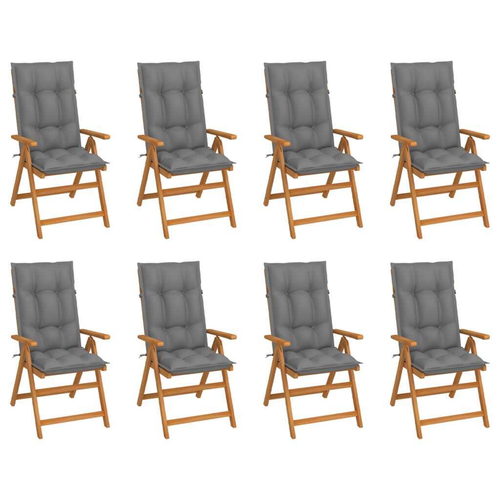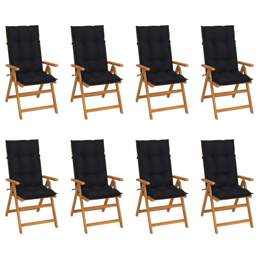 This wooden garden chair set is an excellent addition to your garden or patio. It is ideal for relaxing, chatting with family and friends or just enjoying the weather. Constructed from extremely durable teak hard wood, this piece of teak furniture has been seasoned, kiln dried and then fine sanded to give a very smooth appearance. Teak wood is known for its exceptional strength and weather resistance, making it far more suitable for garden furniture than any other kind of wood. Teak wood is the perfect choice if you want to purchase a long lasting piece of garden furniture. The chair's backrest can be adjusted in 7 reclining settings, so you can always find the most comfortable position. It is also lightweight, making it easy to move around. The outdoor chair can also be folded to save space when not in use. The included cushion is more than a practical addition; it also has a decorative function.
