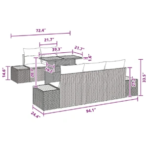 - 4 x Side sofa including storage function, 1 x Centre seat including storage function, 1 x Garden table