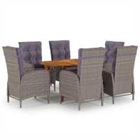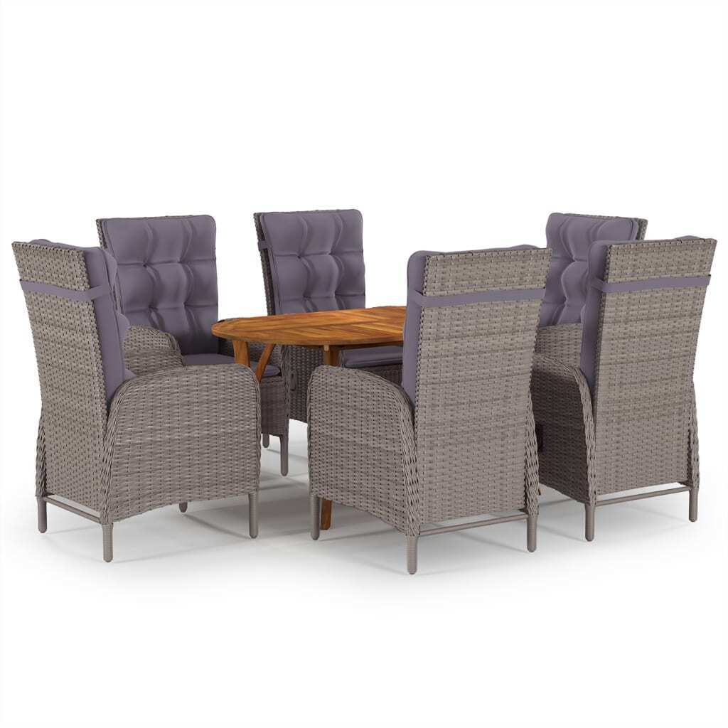 Create a compelling and cohesive aesthetic in your outdoor space with this garden dining set! This outdoor table is made of solid acacia wood, making it sturdy and stable. The oil-finished surface also makes the table easy to clean with a damp cloth. Additionally, the curved legs contribute to its stylish design. Featuring a steel frame covered with weather-resistant PE rattan, these dining chairs are sturdy and easy to clean. The thickly padded cushions add comfort in your lounging time. Note: In order to extend the life of your outdoor furniture, we recommend you to clean it regularly and do not leave it outdoors without protection unnecessarily.Clean: Use a mild soap solutionStoring: If possible, store in a cool, dry place indoors. If the product is stored outdoors, protect it with a waterproof cover. Wipe and dry the excess water or snow from flat surfaces after a rain or snowfall. Allow sufficient air circulation to avoid moisture-related damage.