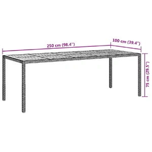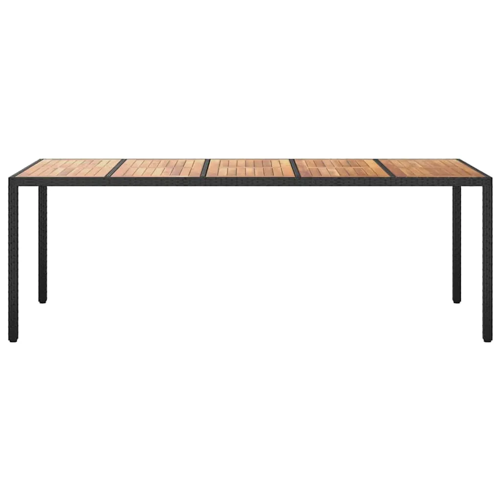 This Modern Garden Dining Table is spot on for outdoorsy meals or chill mornings. With its sleek, simple design, it fits perfectly in modern outdoor settings. It can handle different weather, making it a reliable choice for cozy dinners or fun garden parties. Whether on a terrace or in a backyard, it lifts the atmosphere, providing a stylish yet handy centerpiece for your outdoor area. UV-Resistant Poly Rattan: The table’s made from great quality poly rattan that shields against harmful UV rays. This keeps its shiny look and strength even when the sun's blazing. The textured finish feels good and adds a splash of style to its simple design. Super tough, it’s made for outdoor use, ensuring it lasts and looks good. Steel Frame and Legs: Under the classy wooden top, there’s a strong steel frame, powder-coated for durability. This keeps the whole thing steady with square steel legs, which enhances its modern vibe. The steel frame makes sure the table will hold up for all sorts of outdoor fun. The leg style fits the trendy look, making it a fantastic choice for stylish patios and gardens. Solid Acacia Wood Surface: The table's solid Acacia wood top is sturdy and looks beautiful. The wood adds a warm touch to the industrial steel frame, inviting people to gather around. Acacia is also water-resistant, making it great for the outdoors and helping the table maintain its charm over time. Spacious Rectangular Design: Measuring 250 x 100 x 75 cm, there’s heaps of room for meals or a comfy workspace. Its rectangular shape and opaque finish are flexible, perfect for family dinners or just hanging out with a coffee. It’s great for both small and large gatherings, so everyone has space at the table. Easy Care & Maintenance: Keep the table looking fresh with just a damp cloth, and avoid harsh cleaners. For extra longevity, use a cover when it’s not in use to protect it from tough weather. These simple care tips will help the table stick around in your outdoor setup for ages.