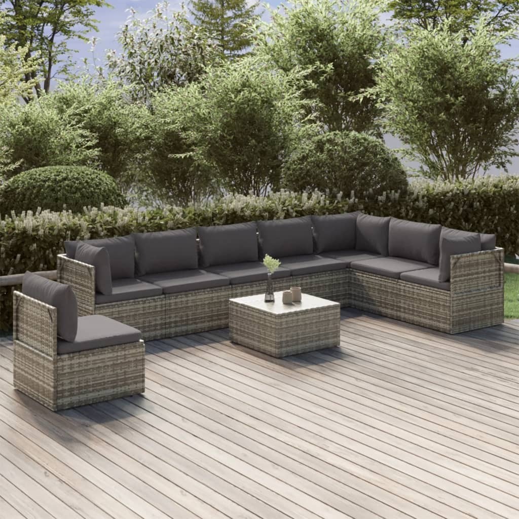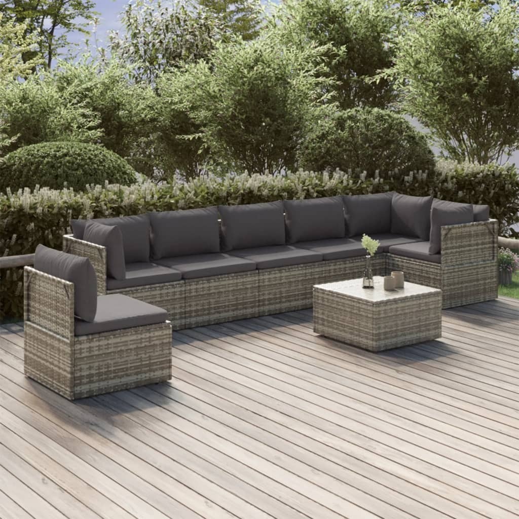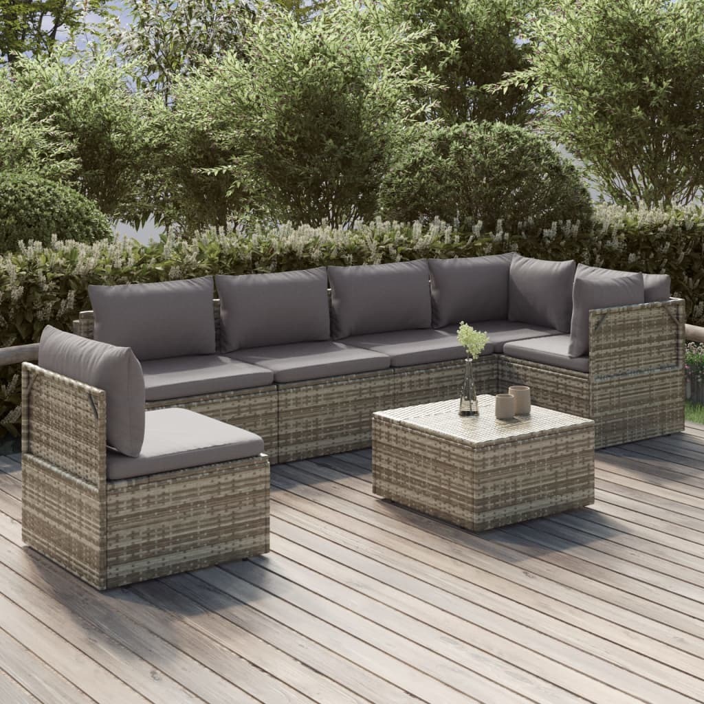 This trendy garden lounge set, featuring an elegant and contemporary design, is a great choice for dining or relaxing in your garden. Durable material: Poly rattan is an exceptional resistance material and durable with different weather conditions. It needs little maintenance. The steel frame ensures sturdiness and stability.Comfortable seat experience: Extra cushions and pillows are included for your comfort.Ample storage space: The storage space makes it easy to keep things organised. It is suitable for storing your cushions, pillows, blankets, toys, and other items.Waterproof bag: The waterproof bag with cover, zipper and hook-and-loop fasteners can keep your belongings safe and protect your items from moisture. Note:In order to extend the life of your outdoor furniture, we recommend you to protect it with a waterproof cover.Each product comes with an assembly manual in the box for easy assembly.