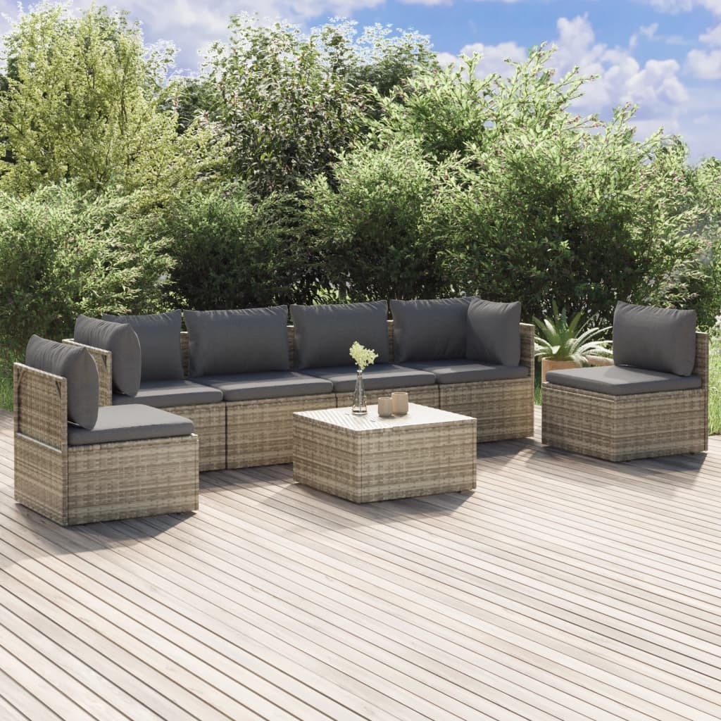 This trendy garden lounge set, featuring an elegant and contemporary design, is a great choice for dining or relaxing in your garden. Durable material: Poly rattan is an exceptional resistance material and durable with different weather conditions. It needs little maintenance. The steel frame ensures sturdiness and stability.Comfortable seat experience: Extra cushions and pillows are included for your comfort.Ample storage space: The storage space makes it easy to keep things organised. It is suitable for storing your cushions, pillows, blankets, toys, and other items.Waterproof bag: The waterproof bag with cover, zipper and hook-and-loop fasteners can keep your belongings safe and protect your items from moisture. Note:In order to extend the life of your outdoor furniture, we recommend you to protect it with a waterproof cover.Each product comes with an assembly manual in the box for easy assembly.