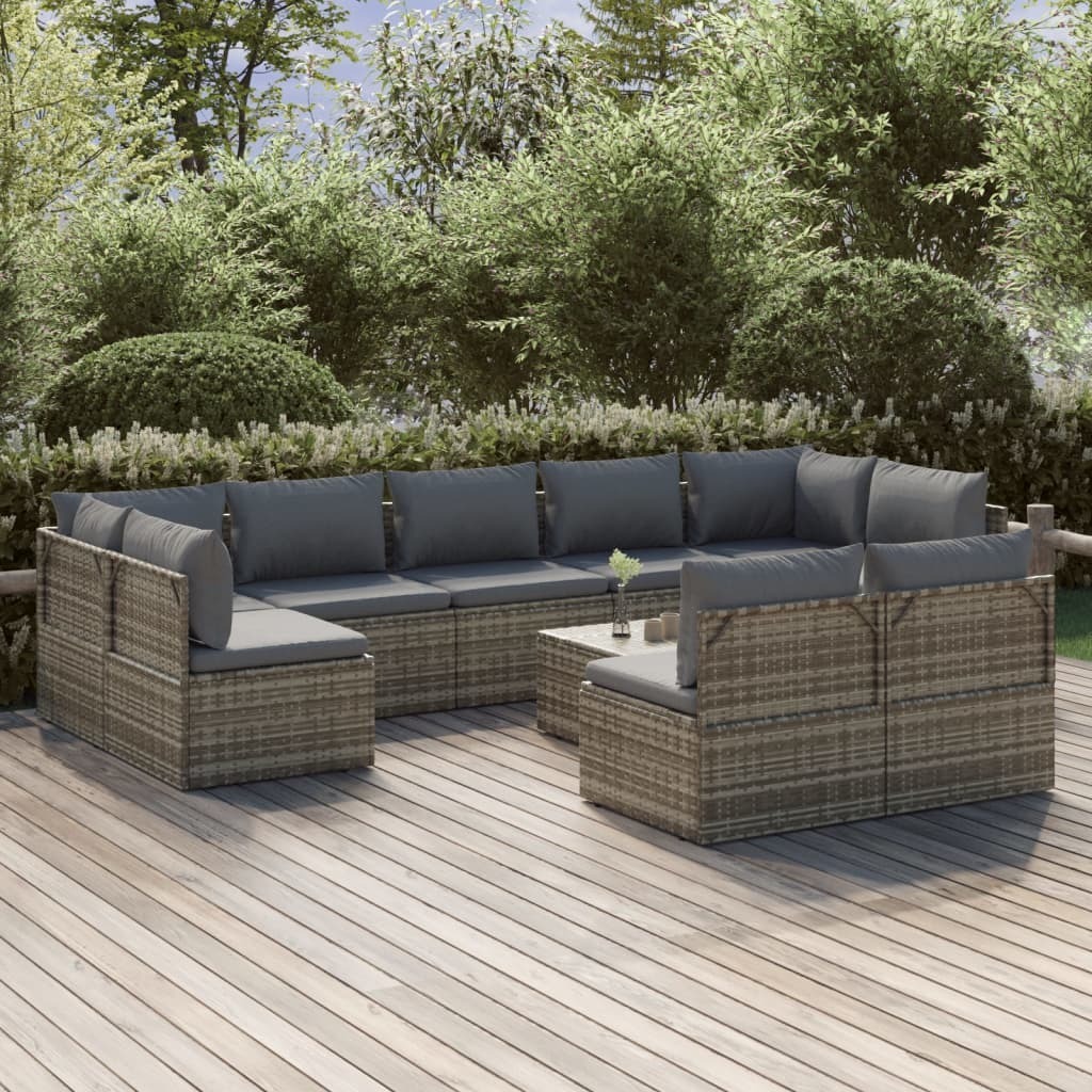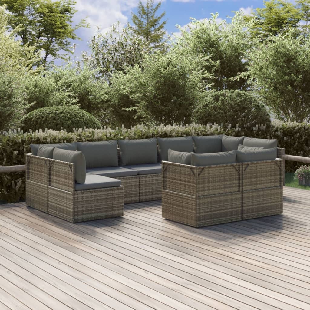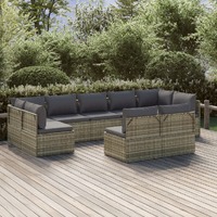This trendy garden lounge set, featuring an elegant and contemporary design, is a great choice for dining or relaxing in your garden. Durable material: Poly rattan is an exceptional resistance material and durable with different weather conditions. It needs little maintenance. The steel frame ensures sturdiness and stability.Comfortable seat experience: Extra cushions and pillows are included for your comfort.Ample storage space: The storage space makes it easy to keep things organised. It is suitable for storing your cushions, pillows, blankets, toys, and other items.Waterproof bag: The waterproof bag with cover, zipper and hook-and-loop fasteners can keep your belongings safe and protect your items from moisture. Note:In order to extend the life of your outdoor furniture, we recommend you to protect it with a waterproof cover.Each product comes with an assembly manual in the box for easy assembly.