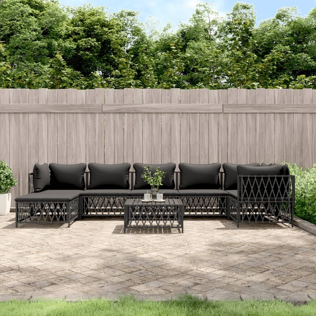 Enjoy a cup of coffee or tea in your outdoor space with this comfortable garden lounge set! Durable material: Woven fabric is any textile formed by weaving. It's an extremely useful type of fabric that we use a great deal in our everyday lives due to its durability and versatility.Sturdy frame: The powder-coated steel frame makes the lounge set sturdy and stable for daily outdoor use.Comfortable seat experience: The backrest adds extra seating comfort for the outdoor sofa. Also, the thickly padded cushions provide comfort for your sitting time.Modular design: The sofa set is flexible and easy to move around, so you can combine it with other modular segments in the webshop to create your own personal garden lounge set configurations! Note:To make sure your outdoor furniture stays beautiful, we recommend protecting it with a waterproof cover.