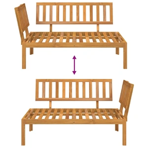 This wooden pallet sofa with slatted design will make a great addition to your garden, patio, or terrace for enjoying a cosy time with your family or friends. Solid acacia wood: This corner sofa is made of solid acacia wood. Solid acacia wood is a beautiful natural material. Acacia wood is a tropical hardwood, which is dense, sturdy, and durable. Its oil finish makes the sofa suitable for outdoor use.Comfortable seat experience: The backrest adds extra seating comfort for the outdoor sofa. Modular design: The sectional sofa is flexible and easy to move around. You can combine it with other modular segments available in the drop-down menu to create your own personal garden lounge set configurations! Good to know:To make sure your outdoor furniture stays beautiful, we recommend protecting it with a waterproof cover.Cushion is not included with this pallet sofa. We do offer a standard 120x80 cm pallet cushion. You can check our shop for a matching cushion.