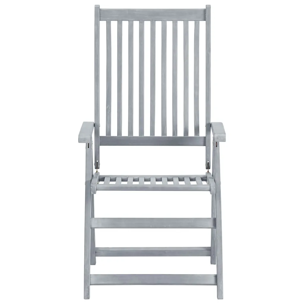 This trendy garden reclining chair set with cushions elevates the comfort of your outdoor space! These armchairs are made of solid acacia wood with a grey wash finish, a hardwood with dense grains. These beautifully-designed outdoor chairs are stable, durable and eye-catching. The chair's backrest can be adjusted in 5 reclining settings, so you can always set the most comfortable position as per your preference. What's more, the included cushions provide extra comfort while lounging or dining. Each cushion has an elastic band and two sets of ropes to fix it on the chair tightly. These chairs are perfect for dining with your family, or just enjoying the weather in your garden.