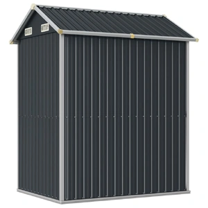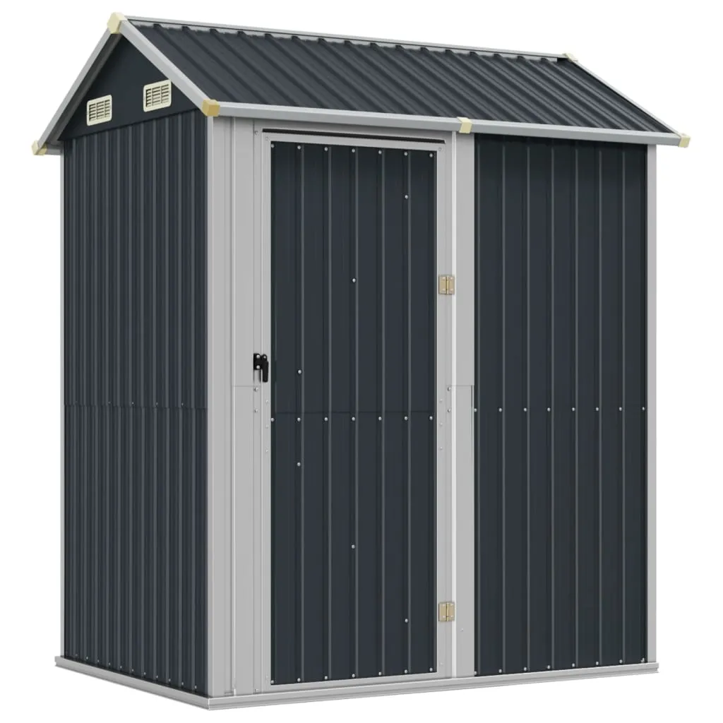 Expand your outdoor storage possibilities and protect your tools with this multifunctional garden shed. Robust material: The garden tool shed is made of galvanised steel, which prevents rusting and endures long-time use. Steel is an exceptionally hard and strong material. It offers sturdiness and stability. Galvanisation provides better protection against corrosion and is useful for products that'll be used outdoors as well as in harsh environments.Ample storage space: This metal shed provides ample space to store your firewood, garden tools, furniture, equipment, and more.Convenient door: The door allows quick and easy access to your tools and protects your stored items from small animals or wind.Good ventilation: The outdoor shed is equipped with 4 air vents, providing ventilation to reduce the accumulation of moisture and odour in the house.Sloping design: The sloping roof ensures unimpeded drainage of water.Good to know:To prevent damage from heavy snow buildup, we recommend clearing the roof regularly during winter.