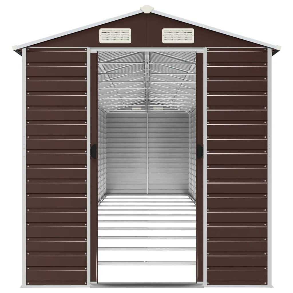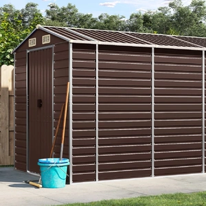 Expand your outdoor storage possibilities and protect your tools with this multifunctional garden shed. Robust material: The garden tool shed is made of galvanised steel, which prevents rusting and endures long-time use. Steel is an exceptionally hard and strong material. It offers sturdiness and stability. Galvanisation provides better protection against corrosion and is useful for products that'll be used outdoors as well as in harsh environments.Ample storage space: This metal shed provides ample space to store your firewood, garden tools, furniture, equipment, and more.Convenient handles: The storage shed features handles on the door for easy entry.Good ventilation: The outdoor shed is equipped with 4 air vents, providing ventilation to reduce the accumulation of moisture and odour in the house.Sloping design: The sloping roof ensures unimpeded drainage of water.