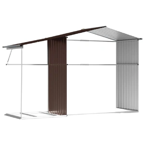 Expand your outdoor storage possibilities and protect your tools with this multifunctional garden shed. Robust material: The garden tool shed is made of galvanised steel, which prevents rusting and endures long-time use. Steel is an exceptionally hard and strong material. It offers sturdiness and stability. Galvanisation provides better protection against corrosion and is useful for products that'll be used outdoors as well as in harsh environments.Ample storage space: This metal shed with a firewood stand provides ample space to store your firewood, garden tools, furniture, equipment, and more.Convenient handles: The storage shed features handles on the door for easy entry.Good ventilation: The outdoor shed is equipped with 4 air vents, providing ventilation to reduce the accumulation of moisture and odour in the house.Sloping design: The sloping roof ensures unimpeded drainage of water.