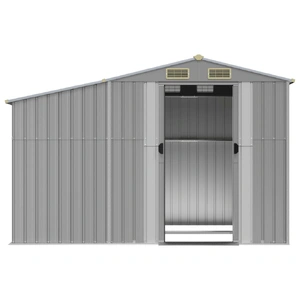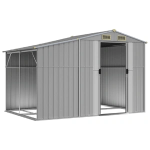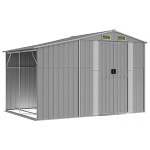 Expand your outdoor storage possibilities and protect your tools with this multifunctional garden shed. Robust material: The garden tool shed is made of galvanised steel, which prevents rusting and endures long-time use. Steel is an exceptionally hard and strong material. It offers sturdiness and stability. Galvanisation provides better protection against corrosion and is useful for products that'll be used outdoors as well as in harsh environments.Ample storage space: This metal shed with a firewood stand provides ample space to store your firewood, garden tools, furniture, equipment, and more.Convenient handles: The storage shed features handles on the door for easy entry.Good ventilation: The outdoor shed is equipped with 4 air vents, providing ventilation to reduce the accumulation of moisture and odour in the house.Sloping design: The sloping roof ensures unimpeded drainage of water.