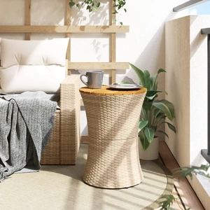 Gather around this versatile garden side table to enjoy a coffee or have a chat with your family and friends in the garden, backyard, or on the patio! Durable material: PE rattan, also known as poly rattan, is a strong, low-maintenance synthetic material that looks like natural rattan. It's lightweight, easy to clean, and commonly used for outdoor furniture due to its durability and weather-resistant properties. Stable and easy-to-clean tabletop: This garden table has an acacia wood top that is sturdy, durable, and easy to clean with a damp cloth. Robust and stable frame: The powder-coated steel frame ensures the garden furniture is strong and stable for daily outdoor use. Good to know:To make sure your outdoor furniture stays beautiful, we recommend protecting it with a waterproof cover.
