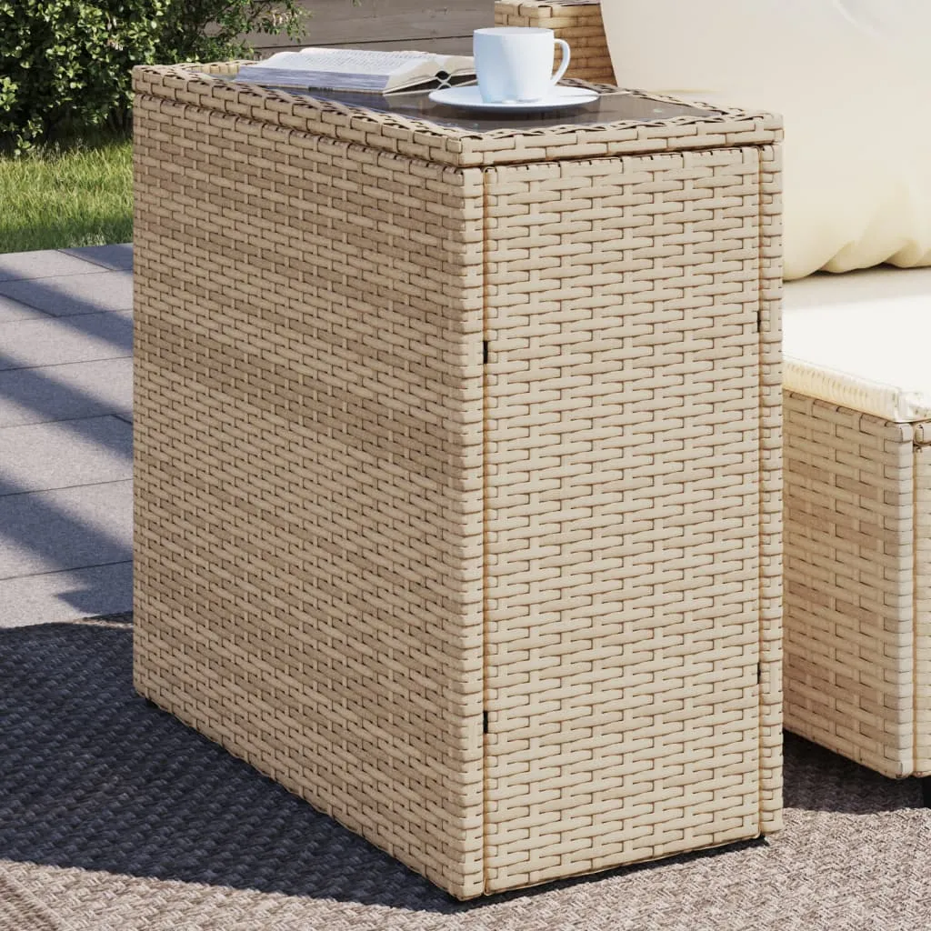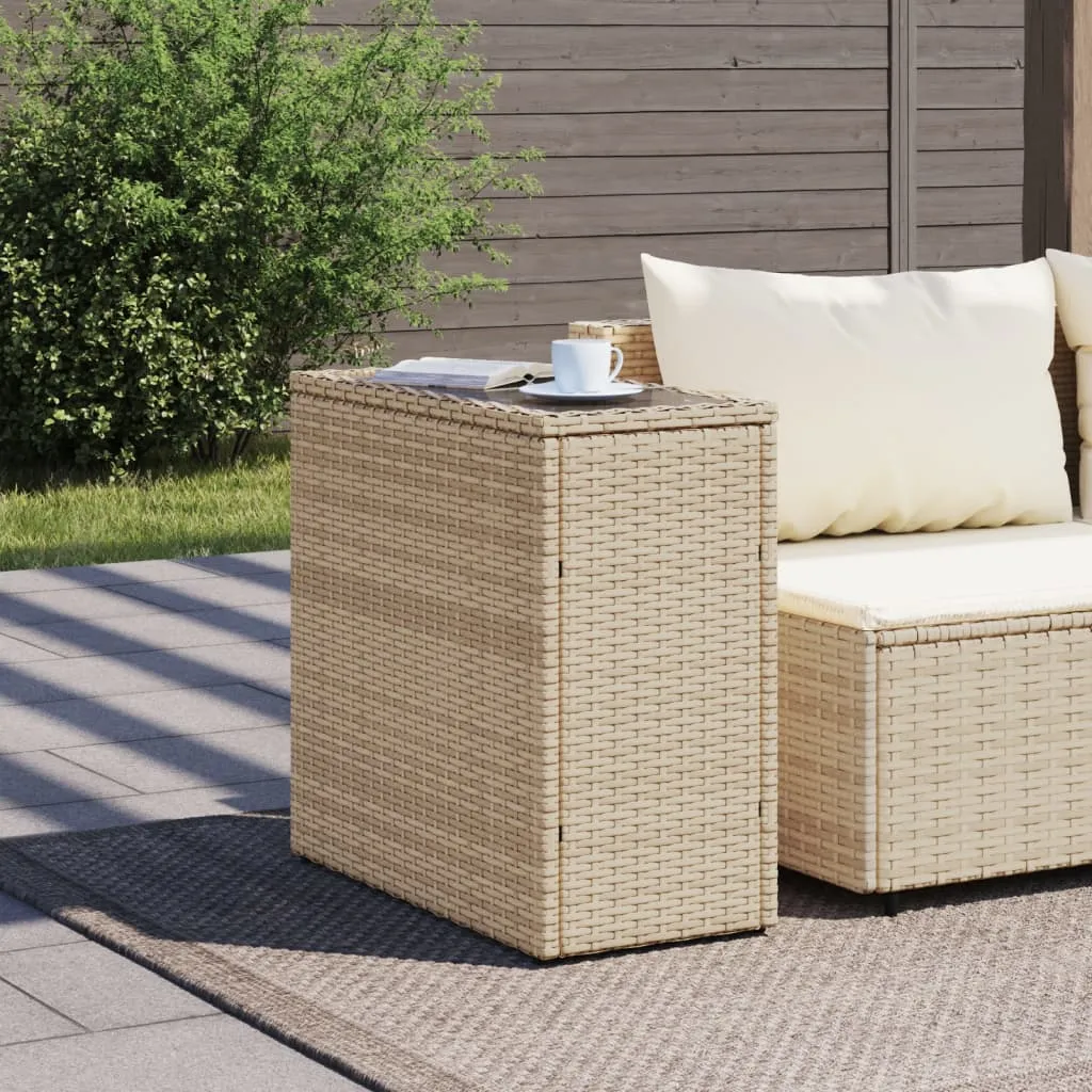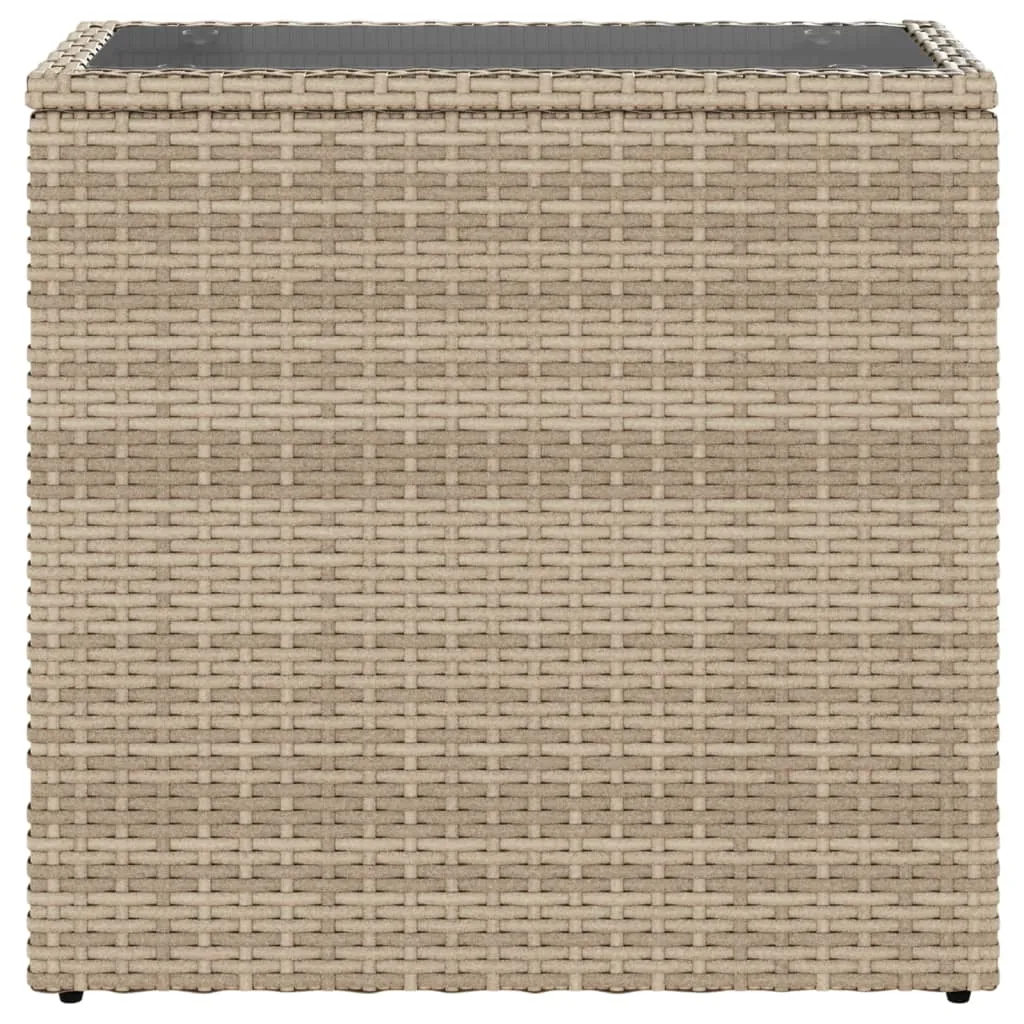 Gather around this versatile garden side table to enjoy a coffee or have a chat with your family and friends in the garden, backyard, or on the patio! Durable material: PE rattan, also known as poly rattan, is a strong, low-maintenance synthetic material that looks like natural rattan. It's lightweight, easy to clean, and commonly used for outdoor furniture due to its durability and weather-resistant properties.Glass tabletop: The outdoor table's top is made from strong and durable tempered glass, making it easy to clean with a damp cloth and adding a touch of elegance to your outdoor space.Robust and stable frame: The powder-coated steel frame ensures the garden furniture is strong and stable for daily outdoor use. Good to know:To make sure your outdoor furniture stays beautiful, we recommend protecting it with a waterproof cover.