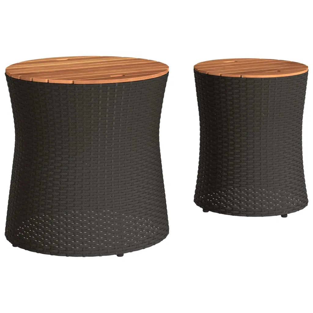 Gather around these elegant garden side tables to enjoy a coffee or have a chat with your family and friends in the garden, backyard, or on the patio! Durable material: PE rattan, also known as poly rattan, is a strong, low-maintenance synthetic material that looks like natural rattan. It's lightweight, easy to clean, and commonly used for outdoor furniture due to its durability and weather-resistant properties.Wooden tabletop: The outdoor table's top is made from sturdy and durable acacia wood, making it easy to clean with a damp cloth and adding a touch of elegance to your outdoor space.Robust and stable frame: The powder-coated steel frame ensures that the sofa side table is strong and stable for daily outdoor use.Space saving: The smaller patio side table can be put inside the large one to save space. Good to know:To make sure your outdoor furniture stays beautiful, we recommend protecting it with a waterproof cover.