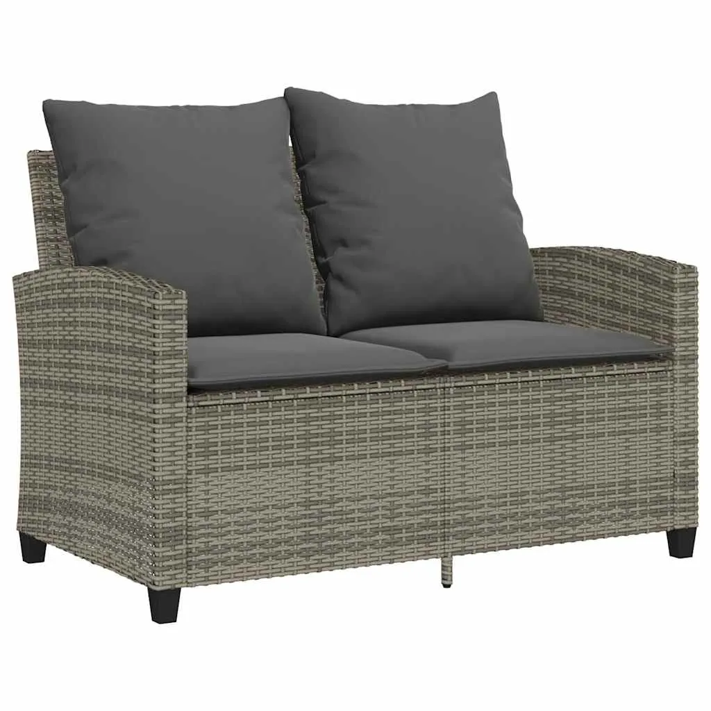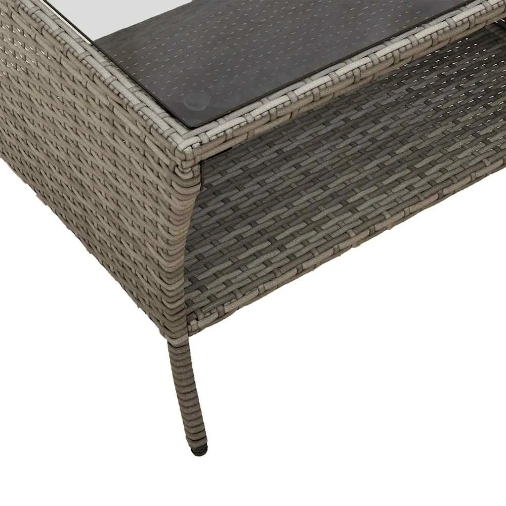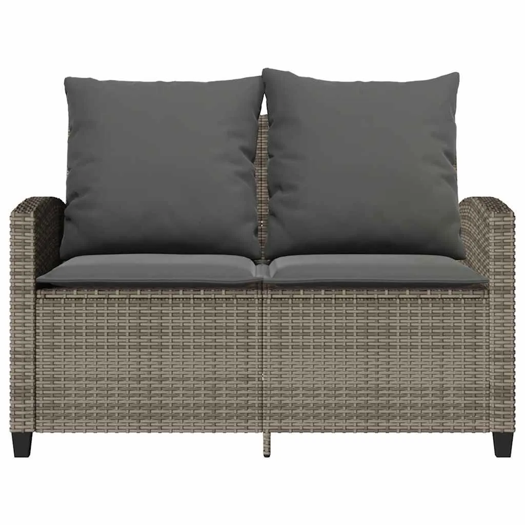Relax and enjoy the outdoors in this comfortable 2-seater garden sofa! Durable material: PE rattan, also known as poly rattan, is a strong, low-maintenance synthetic material that looks like natural rattan. It's lightweight, easy to clean, and commonly used for outdoor furniture due to its durability and weather-resistant properties.Glass tabletop: The outdoor table's top is made from strong and durable tempered glass, making it easy to clean with a damp cloth and adding a touch of elegance to your outdoor space.Comfortable seat experience: This outdoor furniture, complete with thickly padded cushions, offers a comfortable seating experience.Removable and washable cover: These seat cushions and pillows feature removable covers for easy washing and maintenance.Robust and stable frame: The powder-coated steel frame ensures that the garden furniture is strong and stable for daily outdoor use. Good to know:To make sure your outdoor furniture stays beautiful, we recommend protecting it with a waterproof cover.