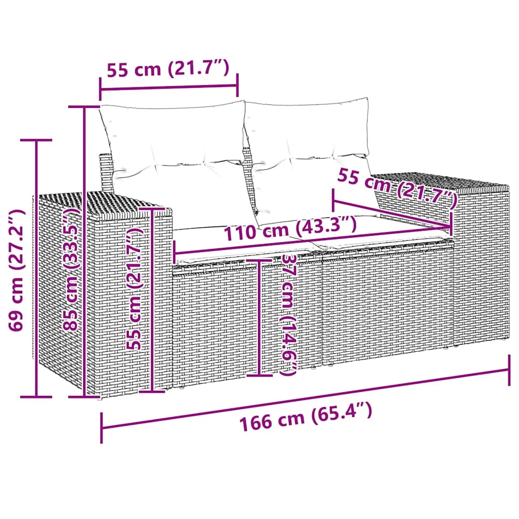 Relax and enjoy the outdoors in this comfortable 2-seater garden sofa! Durable material: PE rattan, also known as poly rattan, is a strong, low-maintenance synthetic material that looks like natural rattan. It's lightweight, easy to clean, and commonly used for outdoor furniture due to its durability and weather-resistant properties.Comfortable seat experience: This outdoor furniture, complete with thickly padded cushions, offers a comfortable seating experience. The wide armrests also provide a convenient spot to keep your cellphone, cups, or other small items within easy reach.Removable and washable cover: These seat cushions feature removable covers for easy washing and maintenance.Modular design: This outdoor furniture set has a modular design, making it completely flexible and easy to move around, so you can create a customised outdoor furniture arrangement. Good to know:To make sure your outdoor furniture stays beautiful, we recommend protecting it with a waterproof cover.