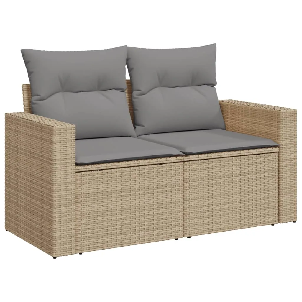 Relax and enjoy the outdoors in this comfortable 2-seater garden sofa! Durable material: PE rattan, also known as poly rattan, is a strong, low-maintenance synthetic material that looks like natural rattan. It's lightweight, easy to clean, and commonly used for outdoor furniture due to its durability and weather-resistant properties.Storage function with water-resistant bag: Each garden seat features a storage space under the seat, complete with a water-resistant bag for storing cushions, toys, and other items. The inner bags have a top cover and can be securely fastened to the seats with hook-and-loop fasteners for added stability.Comfortable seat experience: This outdoor furniture, complete with thickly padded cushions, offers a comfortable seating experience. The wide armrests also provide a convenient spot to keep your cellphone, cups, or other small items within easy reach.Removable and washable cover: These seat cushions feature removable covers for easy washing and maintenance.Modular design: This outdoor furniture set has a modular design, making it completely flexible and easy to move around, so you can create a customised outdoor furniture arrangement. Good to know:To make sure your outdoor furniture stays beautiful, we recommend protecting it with a waterproof cover.