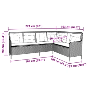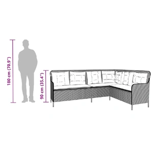 This L-shaped garden sofa is the perfect addition to your garden, terrace, or patio, providing a comfortable and inviting space for chatting with family and friends or simply relaxing and enjoying the outdoors. Durable material: PE rattan, also known as poly rattan, is a strong, low-maintenance synthetic material that looks like natural rattan. It's lightweight, easy to clean, and commonly used for outdoor furniture due to its durability and weather-resistant properties.Comfortable seat experience: This outdoor furniture, complete with thickly padded cushions, offers a comfortable seating experience.Removable and washable cover: These seat cushions feature removable covers for easy washing and maintenance.Robust and stable frame: The powder-coated steel frame ensures the garden furniture is strong and stable for daily outdoor use. Good to know:To make sure your outdoor furniture stays beautiful, we recommend protecting it with a waterproof cover.
