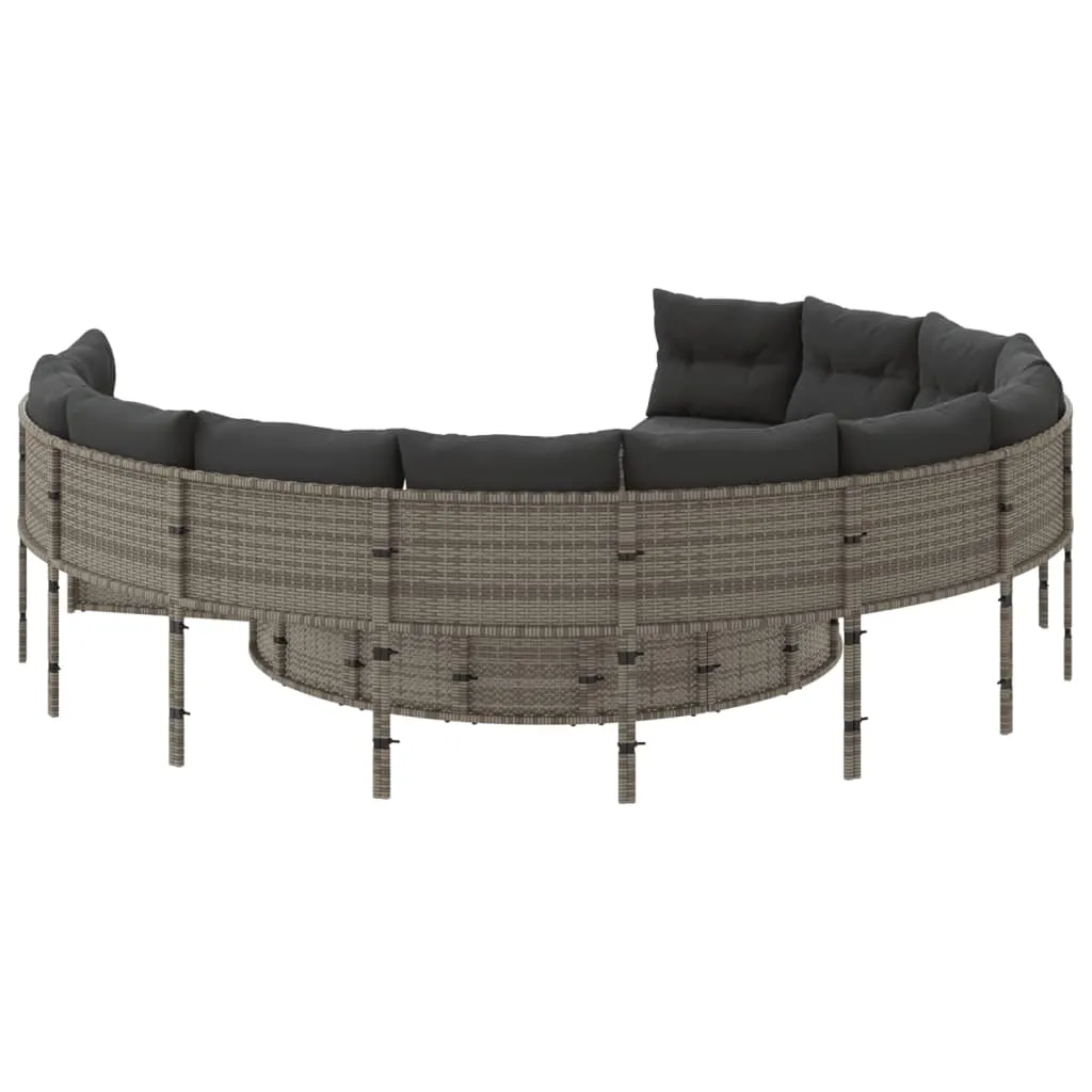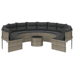 This round-shaped garden sofa is the perfect addition to your garden, terrace, or patio, providing a comfortable and inviting space for chatting with family and friends or simply relaxing and enjoying the outdoors. Durable material: PE rattan, also known as poly rattan, is a strong, low-maintenance synthetic material that looks like natural rattan. It's lightweight, easy to clean, and commonly used for outdoor furniture due to its durability and weather-resistant properties.Comfortable seat experience: This outdoor furniture, complete with thickly padded cushions, offers a comfortable seating experience.Removable and washable cover: These seat cushions feature removable covers for easy washing and maintenance.Glass tabletop: The outdoor table's top is made from strong and durable tempered glass, making it easy to clean with a damp cloth and adding a touch of elegance to your outdoor space.Robust and stable frame: The powder-coated steel frame ensures that the garden furniture is strong and stable for daily outdoor use. Good to know:To make sure your outdoor furniture stays beautiful, we recommend protecting it with a waterproof cover.