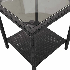 - Material: PE rattan, powder-coated steel, tempered glass