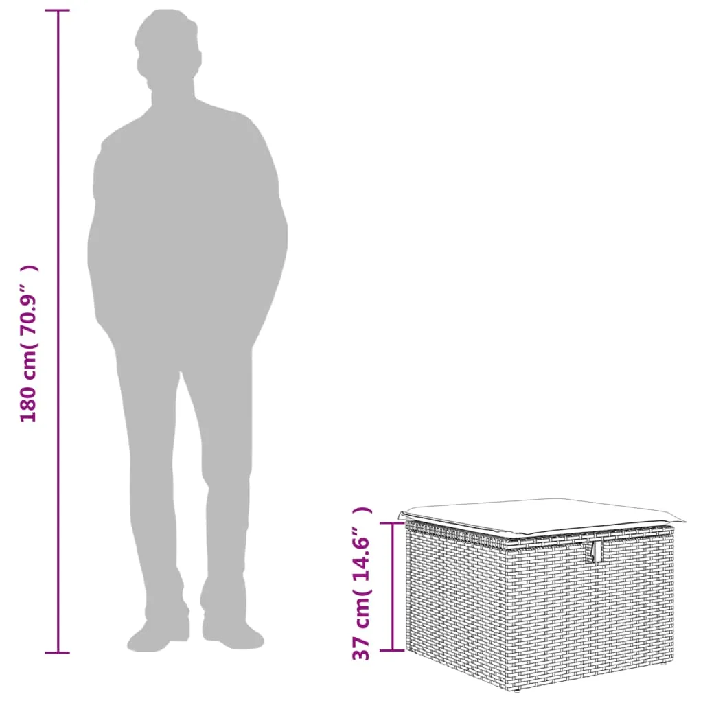 Relax and enjoy the outdoors on this comfortable garden stool! Durable material: PE rattan, also known as poly rattan, is a strong, low-maintenance synthetic material that looks like natural rattan. It's lightweight, easy to clean, and commonly used for outdoor furniture due to its durability and weather-resistant properties.Storage function: Each garden seat features a storage space under the seat for storing garden tools and other items.Comfortable seat experience: This outdoor furniture, complete with a thickly padded cushion, offers a comfortable seating experience.Removable and washable cover: The seat cushion features a removable cover for easy washing and maintenance.Robust and stable frame: The powder-coated steel frame ensures the garden furniture is strong and stable for daily outdoor use. Good to know:To make sure your outdoor furniture stays beautiful, we recommend protecting it with a waterproof cover.