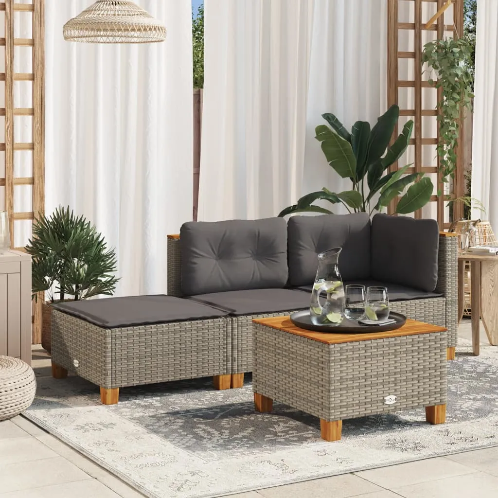 - Material: PE rattan, powder-coated steel, solid acacia wood with a natural oil finish