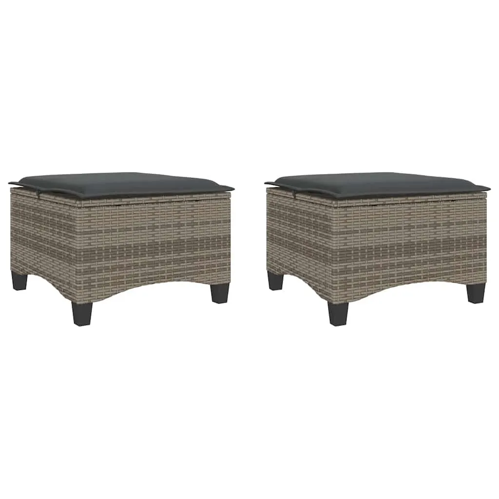 Relax and enjoy the outdoors on these comfortable garden stools! Durable material: PE rattan, also known as poly rattan, is a strong, low-maintenance synthetic material that looks like natural rattan. It's lightweight, easy to clean, and commonly used for outdoor furniture due to its durability and weather-resistant properties.Robust and stable frame: The powder-coated steel frame is strong, stable, durable, and resistant to corrosion and harsh weather, ensuring long-lasting performance.Comfortable seat experience: This outdoor furniture, complete with thickly padded cushions, offers a comfortable seating experience.Removable and washable cover: These seat cushions feature removable covers for easy washing and maintenance.Wide applications: The stool is versatile, serving as a comfortable footrest for when you're lounging on the sofa or as an extra seat in your garden. It can also be used as a table when remove the seat cushion. Good to know:To make sure your outdoor furniture stays beautiful, we recommend protecting it with a waterproof cover.