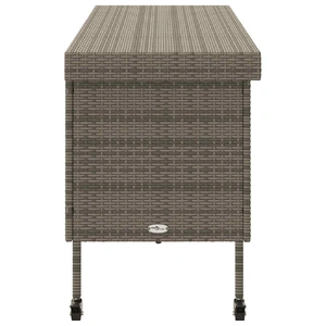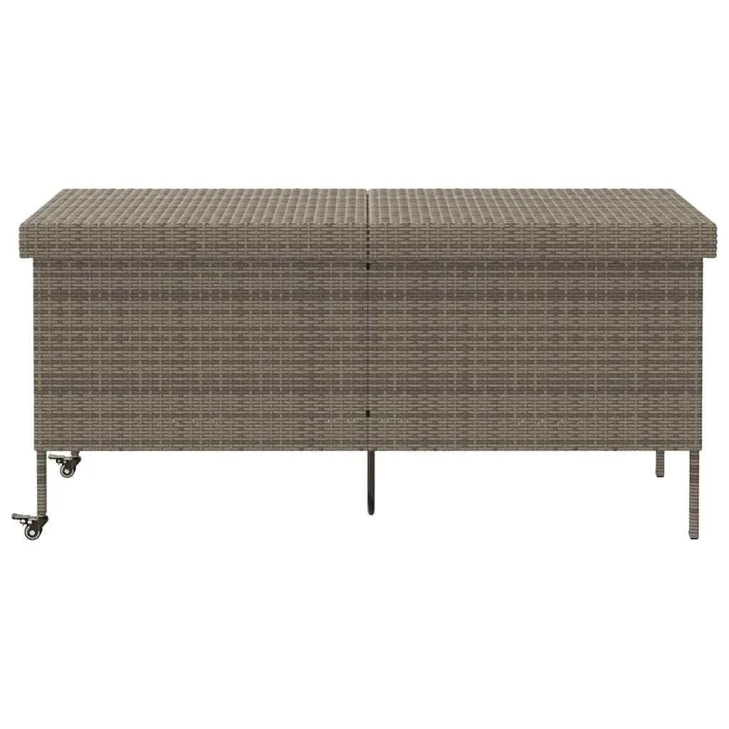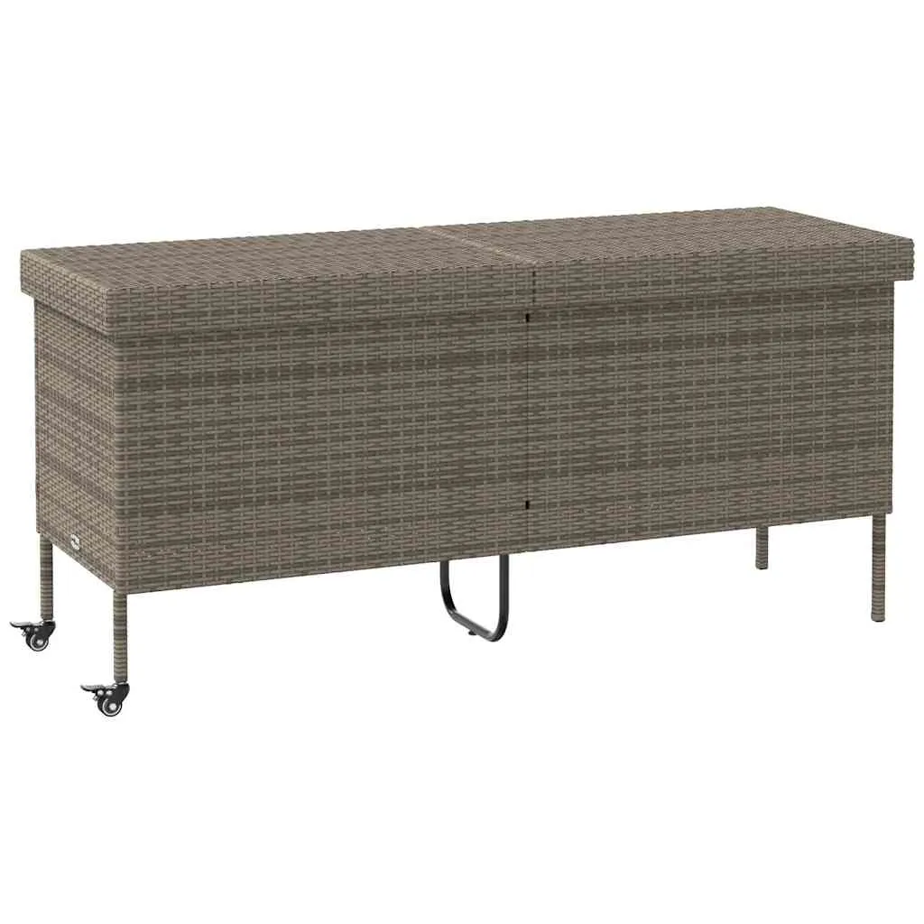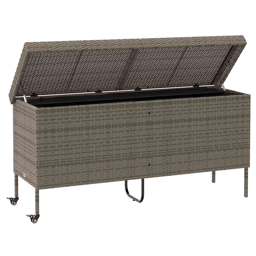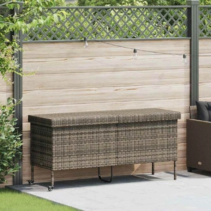 This garden storage box is perfect for keeping your outdoor furniture cushions, gardening supplies, pool towels, and other items organised and easily accessible. Durable material: PE rattan, also known as poly rattan, is a strong, low-maintenance synthetic material that looks like natural rattan. It's lightweight, easy to clean, and commonly used for outdoor furniture due to its durability and weather-resistant properties.Robust and stable frame: The powder-coated steel frame is strong, stable, durable, and resistant to corrosion and harsh weather, ensuring long-lasting performance.Easy to move: This outdoor storage box features two wheels with brakes, allowing for effortless relocation to any desired location while securely locking in place for improved control and safety. Additionally, the handle facilitates easy transportation.Safe and easy to open and close: The gas spring makes it easy to open the lid and keeps it from slamming shut or trapping fingers.Storage function: The garden furniture features storage space underneath, equipped with a water-resistant bag for storing cushions, toys, and other items. The inner bag can be securely attached to the seat with hook-and-loop fasteners, ensuring stability and preventing movement. Good to know:To make sure your outdoor furniture stays beautiful, we recommend protecting it with a waterproof cover.