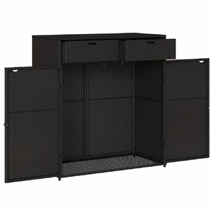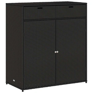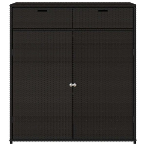 This garden storage cabinet is perfect for keeping your outdoor furniture cushions, gardening supplies, pool towels, and other items organised and easily accessible. Durable material: PE rattan, also known as poly rattan, is a strong, low-maintenance synthetic material that looks like natural rattan. It's lightweight, easy to clean, and commonly used for outdoor furniture due to its durability and weather-resistant properties.Ample storage space: This outdoor storage cabinet has a large space to store your garden tools, pool toys, outdoor cushions, and more.Robust and stable frame: The powder-coated steel frame ensures the garden furniture is strong and stable for daily outdoor use. Practical doors: Both 2 doors are equipped with stainless steel door knobs and magnets for easy opening and closing. WarningTo prevent it being overturned, this product must be used with the provided wall attachment device. Good to know:To make sure your outdoor furniture stays beautiful, we recommend protecting it with a waterproof cover.