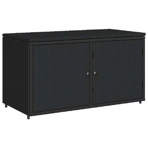 This garden storage cabinet is perfect for keeping your outdoor furniture cushions, gardening supplies, pool towels, and other items organised and easily accessible. Durable material: PE rattan, also known as poly rattan, is a strong, low-maintenance synthetic material that looks like natural rattan. It's lightweight, easy to clean, and commonly used for outdoor furniture due to its durability and weather-resistant properties.Ample storage space: This outdoor storage cabinet has a large space behind the two doors to store your garden tools, pool toys, outdoor cushions, and more.Robust and stable frame: The powder-coated steel frame ensures the garden furniture is strong and stable for daily outdoor use. Practical design: Both 2 doors are equipped with stainless steel door knobs and magnets for easy opening and closing. The top lid helps for easy storage and easy access to your items. WarningTo prevent it being overturned, this product must be used with the provided wall attachment device. Good to know:To make sure your outdoor furniture stays beautiful, we recommend protecting it with a waterproof cover.