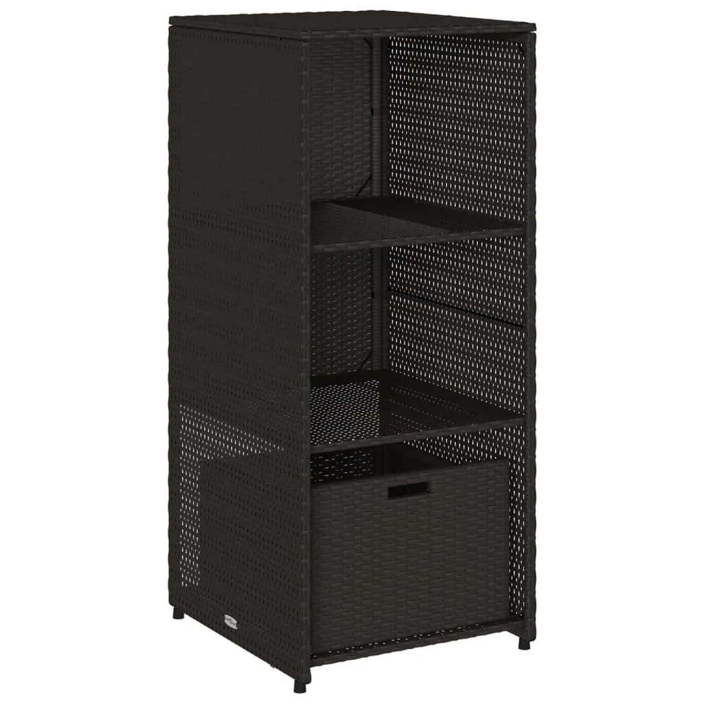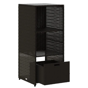 This garden storage cabinet is perfect for keeping your outdoor furniture cushions, gardening supplies, pool towels, and other items organised and easily accessible. Durable material: PE rattan, also known as poly rattan, is a strong, low-maintenance synthetic material that looks like natural rattan. It's lightweight, easy to clean, and commonly used for outdoor furniture due to its durability and weather-resistant properties.Ample storage space: This outdoor storage cabinet has 2 shelves and 1 drawer to store your garden tools, pool toys, outdoor cushions, and more.Robust and stable frame: The powder-coated steel frame ensures the garden furniture is strong and stable for daily outdoor use. WarningTo prevent it being overturned, this product must be used with the provided wall attachment device. Good to know:To make sure your outdoor furniture stays beautiful, we recommend protecting it with a waterproof cover.