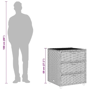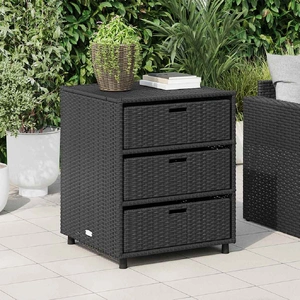 This garden storage cabinet is perfect for keeping your outdoor furniture cushions, gardening supplies, pool towels, and other items organised and easily accessible. Durable material: PE rattan, also known as poly rattan, is a strong, low-maintenance synthetic material that looks like natural rattan. It's lightweight, easy to clean, and commonly used for outdoor furniture due to its durability and weather-resistant properties.Ample storage space: This outdoor storage cabinet has 3 drawers to store your garden tools, pool toys, outdoor cushions, and more.Robust and stable frame: The powder-coated steel frame ensures the garden furniture is strong and stable for daily outdoor use. WarningTo prevent it being overturned, this product must be used with the provided wall attachment device. Good to know:To make sure your outdoor furniture stays beautiful, we recommend protecting it with a waterproof cover.