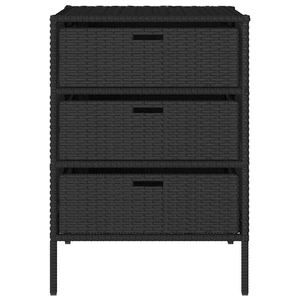 This garden storage cabinet is perfect for keeping your outdoor furniture cushions, gardening supplies, pool towels, and other items organised and easily accessible. Durable material: PE rattan, also known as poly rattan, is a strong, low-maintenance synthetic material that looks like natural rattan. It's lightweight, easy to clean, and commonly used for outdoor furniture due to its durability and weather-resistant properties.Ample storage space: This outdoor storage cabinet has 3 drawers to store your garden tools, pool toys, outdoor cushions, and more.Robust and stable frame: The powder-coated steel frame ensures the garden furniture is strong and stable for daily outdoor use. WarningTo prevent it being overturned, this product must be used with the provided wall attachment device. Good to know:To make sure your outdoor furniture stays beautiful, we recommend protecting it with a waterproof cover.