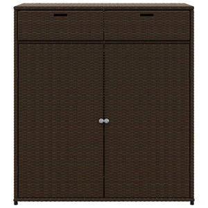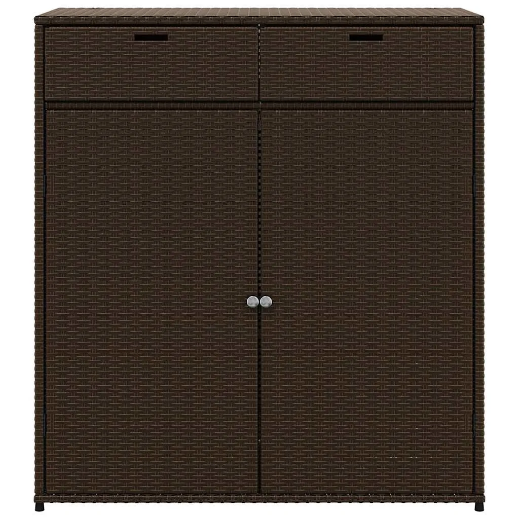 This garden storage cabinet is perfect for keeping your outdoor furniture cushions, gardening supplies, pool towels, and other items organised and easily accessible. Durable material: PE rattan, also known as poly rattan, is a strong, low-maintenance synthetic material that looks like natural rattan. It's lightweight, easy to clean, and commonly used for outdoor furniture due to its durability and weather-resistant properties.Ample storage space: This outdoor storage cabinet has a large space to store your garden tools, pool toys, outdoor cushions, and more.Robust and stable frame: The powder-coated steel frame ensures the garden furniture is strong and stable for daily outdoor use. Practical doors: Both 2 doors are equipped with stainless steel door knobs and magnets for easy opening and closing. WarningTo prevent it being overturned, this product must be used with the provided wall attachment device. Good to know:To make sure your outdoor furniture stays beautiful, we recommend protecting it with a waterproof cover.
