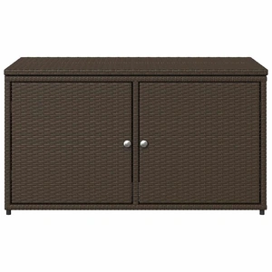 This garden storage cabinet is perfect for keeping your outdoor furniture cushions, gardening supplies, pool towels, and other items organised and easily accessible. Durable material: PE rattan, also known as poly rattan, is a strong, low-maintenance synthetic material that looks like natural rattan. It's lightweight, easy to clean, and commonly used for outdoor furniture due to its durability and weather-resistant properties.Ample storage space: This outdoor storage cabinet has a large space behind the two doors to store your garden tools, pool toys, outdoor cushions, and more.Robust and stable frame: The powder-coated steel frame ensures the garden furniture is strong and stable for daily outdoor use. Practical design: Both 2 doors are equipped with stainless steel door knobs and magnets for easy opening and closing. The top lid helps for easy storage and easy access to your items. WarningTo prevent it being overturned, this product must be used with the provided wall attachment device. Good to know:To make sure your outdoor furniture stays beautiful, we recommend protecting it with a waterproof cover.