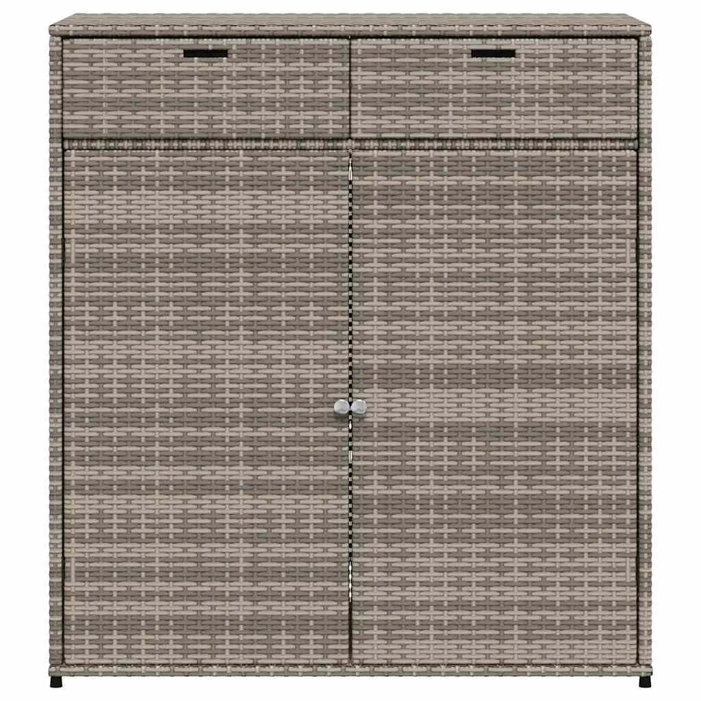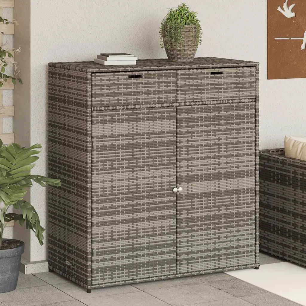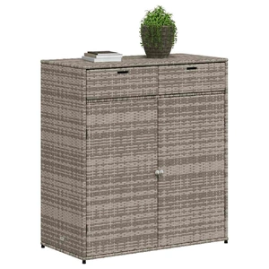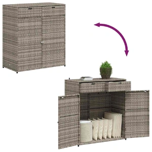 This garden storage cabinet is perfect for keeping your outdoor furniture cushions, gardening supplies, pool towels, and other items organised and easily accessible. Durable material: PE rattan, also known as poly rattan, is a strong, low-maintenance synthetic material that looks like natural rattan. It's lightweight, easy to clean, and commonly used for outdoor furniture due to its durability and weather-resistant properties.Ample storage space: This outdoor storage cabinet has a large space to store your garden tools, pool toys, outdoor cushions, and more.Robust and stable frame: The powder-coated steel frame ensures the garden furniture is strong and stable for daily outdoor use. Practical doors: Both 2 doors are equipped with stainless steel door knobs and magnets for easy opening and closing. WarningTo prevent it being overturned, this product must be used with the provided wall attachment device. Good to know:To make sure your outdoor furniture stays beautiful, we recommend protecting it with a waterproof cover.