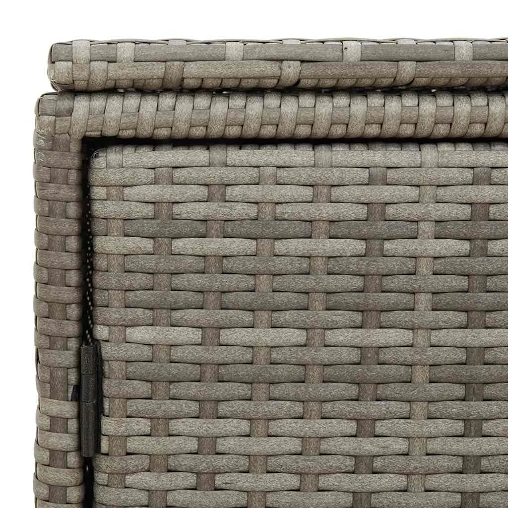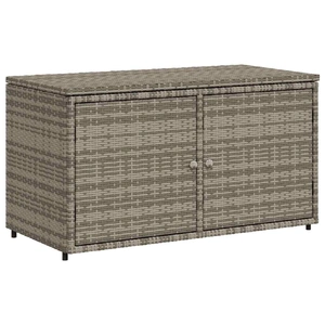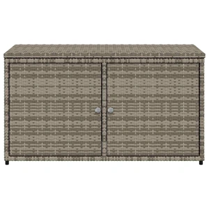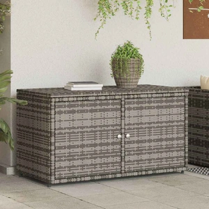 This garden storage cabinet is perfect for keeping your outdoor furniture cushions, gardening supplies, pool towels, and other items organised and easily accessible. Durable material: PE rattan, also known as poly rattan, is a strong, low-maintenance synthetic material that looks like natural rattan. It's lightweight, easy to clean, and commonly used for outdoor furniture due to its durability and weather-resistant properties.Ample storage space: This outdoor storage cabinet has a large space behind the two doors to store your garden tools, pool toys, outdoor cushions, and more.Robust and stable frame: The powder-coated steel frame ensures the garden furniture is strong and stable for daily outdoor use. Practical design: Both 2 doors are equipped with stainless steel door knobs and magnets for easy opening and closing. The top lid helps for easy storage and easy access to your items. WarningTo prevent it being overturned, this product must be used with the provided wall attachment device. Good to know:To make sure your outdoor furniture stays beautiful, we recommend protecting it with a waterproof cover.