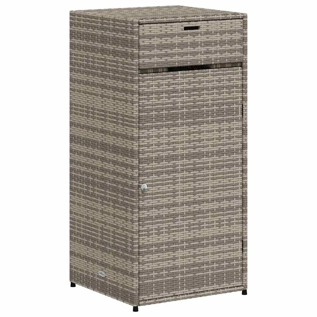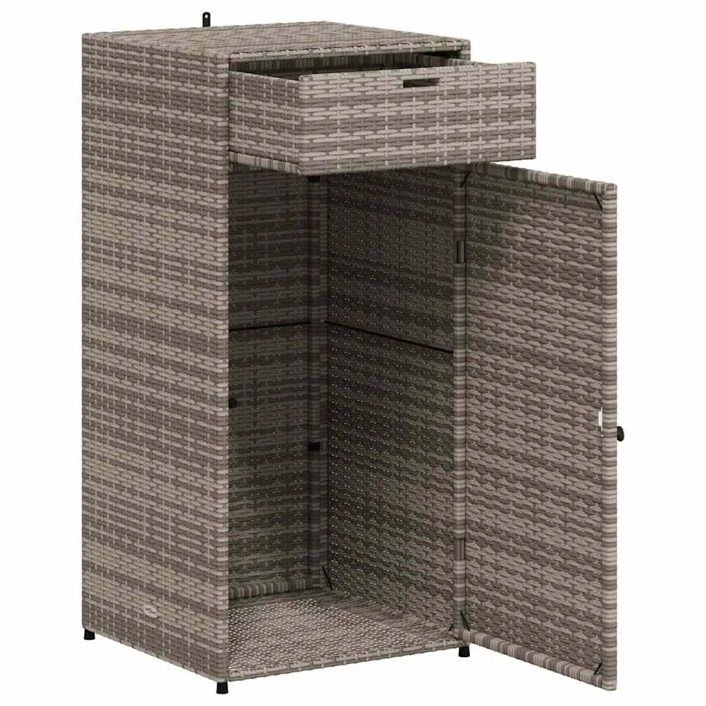 This garden storage cabinet is perfect for keeping your outdoor furniture cushions, gardening supplies, pool towels, and other items organised and easily accessible. Durable material: PE rattan, also known as poly rattan, is a strong, low-maintenance synthetic material that looks like natural rattan. It's lightweight, easy to clean, and commonly used for outdoor furniture due to its durability and weather-resistant properties.Ample storage space: This outdoor storage cabinet has a large space to store your garden tools, pool toys, outdoor cushions, and more.Robust and stable frame: The powder-coated steel frame ensures the garden furniture is strong and stable for daily outdoor use. Practical door: The door is equipped with a stainless steel door knob and a magnet for easy opening and closing. WarningTo prevent it being overturned, this product must be used with the provided wall attachment device. Good to know:To make sure your outdoor furniture stays beautiful, we recommend protecting it with a waterproof cover.