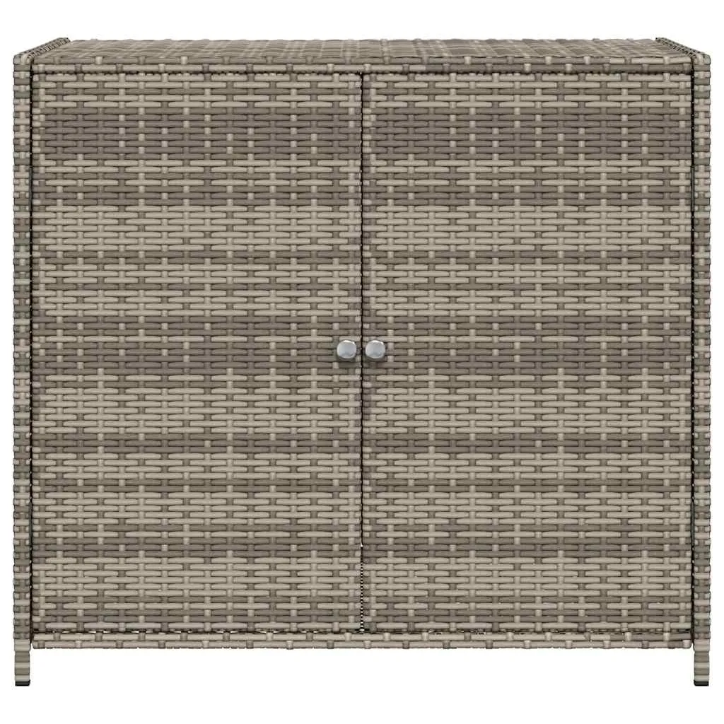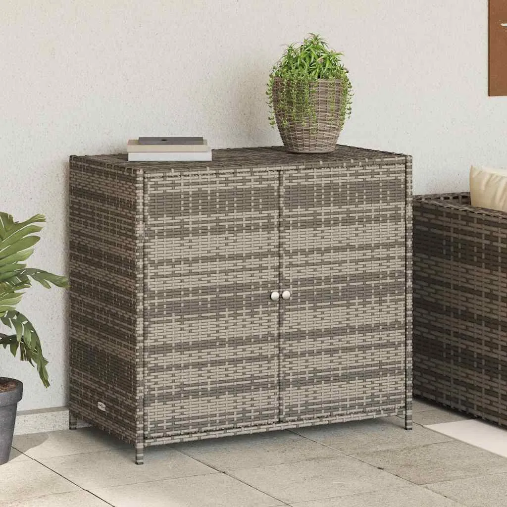 This garden storage cabinet is perfect for keeping your outdoor furniture cushions, gardening supplies, pool towels, and other items organised and easily accessible. Durable material: PE rattan, also known as poly rattan, is a strong, low-maintenance synthetic material that looks like natural rattan. It's lightweight, easy to clean, and commonly used for outdoor furniture due to its durability and weather-resistant properties.Ample storage space: This outdoor storage cabinet has a large space behind the two doors to store your garden tools, pool toys, outdoor cushions, and more.Robust and stable frame: The powder-coated steel frame ensures the garden furniture is strong and stable for daily outdoor use. Practical doors: Both 2 doors are equipped with stainless steel door knobs and magnets for easy opening and closing. WarningTo prevent it being overturned, this product must be used with the provided wall attachment device. Good to know:To make sure your outdoor furniture stays beautiful, we recommend protecting it with a waterproof cover.