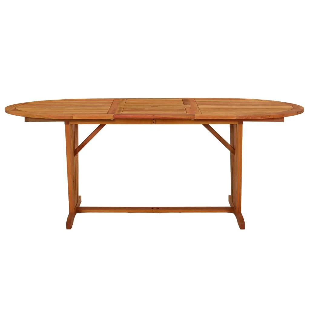 This extendable wooden garden table has a stylish design. It will be a great choice for alfresco dining in the garden or patio. Solid eucalyptus wood: Solid eucalyptus wood is a beautiful natural material. Eucalyptus wood is extremely dense and water repellent.Extendable design: The wooden garden table is extendable, the table top can be enlarged to require a greater surface area when it is needed.Practical umbrella hole: This solid wood table features an umbrella hole to provide an appropriate spot for your umbrella to help you avoid sunlight and rain. Note:In order to extend the life of your outdoor furniture, we recommend you to clean it regularly and do not leave it outdoors without protection unnecessarily.Clean: Use a mild soap solution.Storing: If possible, store in a cool, dry place indoors. If the product is stored outdoors, protect it with a waterproof cover. Wipe and dry the excess water or snow from flat surfaces after a rain or snowfall. Allow sufficient air circulation to avoid moisture-related damage.